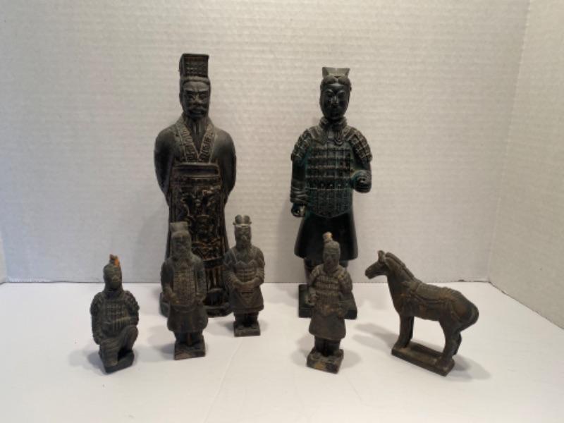 2 Tall Warriors approx 11” Tall. ( the warrior in the skirt his hand has been repaired )