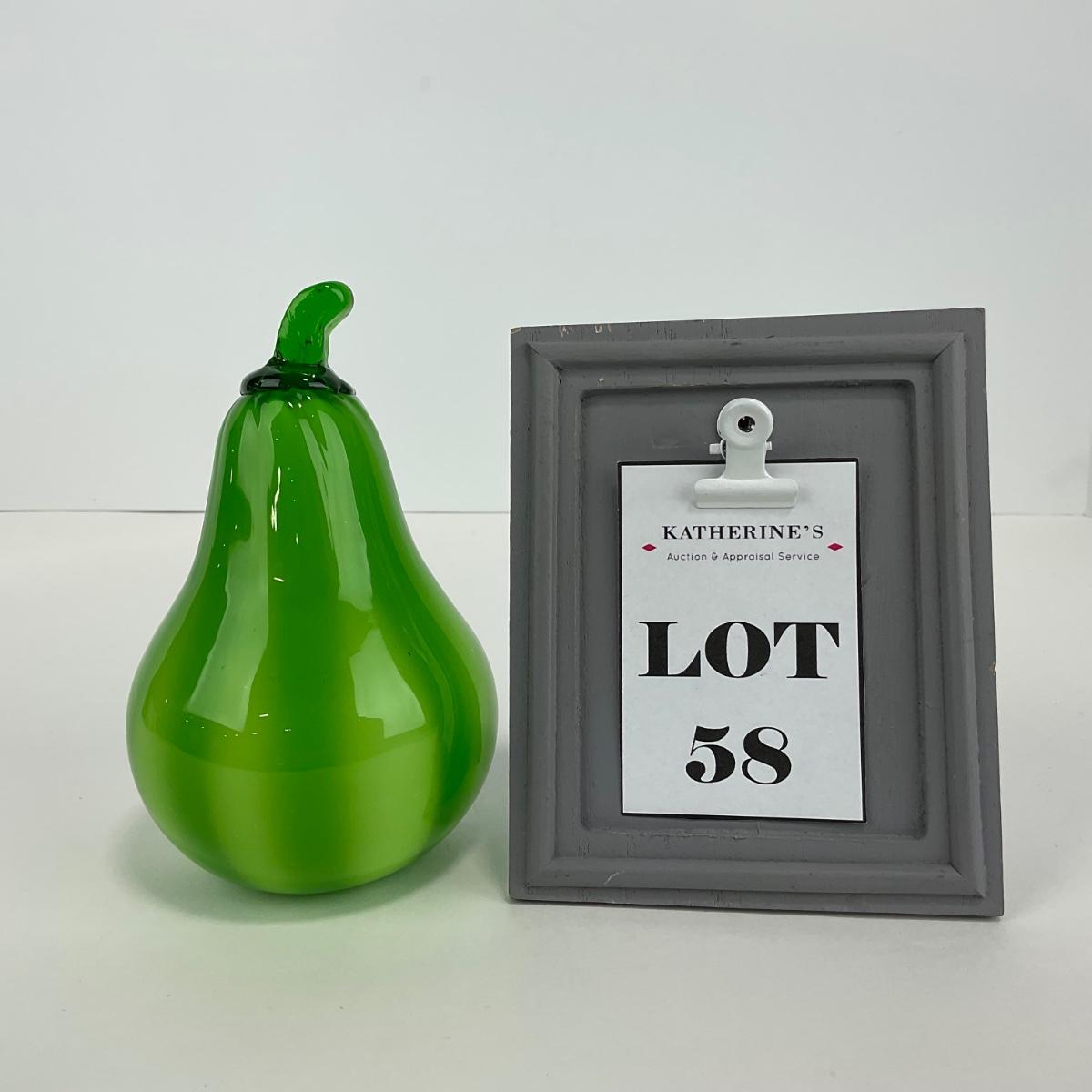 One vintage green gourd figure. This piece has no damage, and appears to be in great shape with no visable chips, cracks, or broken pieces. Please see photos for details and condition. Any condition statement is given as a courtesy to a client, is an opinion, and should not be treated as a statement of fact. Reference to condition written, oral or within a condition report shall not be regarded as a full account of condition and may not include all defects, alterations, or restorations. Absence of a condition report does not imply a lot is flawless or lacking imperfections or damage. Katherine’s Auction & Appraisal Service shall have no responsibility for any error or omission. Returns shall not be accepted on the basis of condition. ::: Shipping is available on this lot. If you require shipping you must let us know at the close of the auction. We will coordinate with you after the item has been won. Shipping fees will include insurance up to or exceeding the value of all items being mailed. If you have any questions regarding this lot please contact the auctioneer either via this website, by direct email or by phone. PICK UP TIMES and other important information can be found in the TERMS and DESCRIPTION of the auction. Please take a look for pertinent information. Thanks!