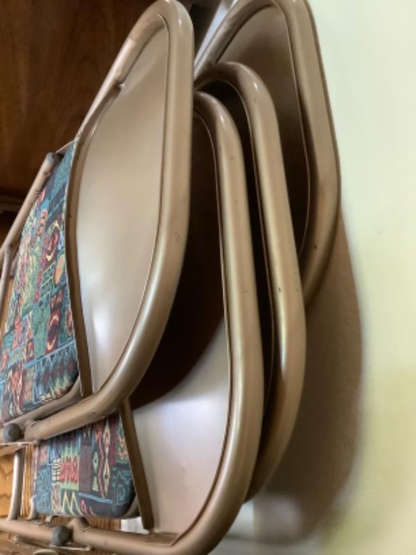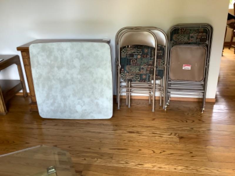 Clean card table, very sturdy. Includes 8 padded chairs in excellent condition, very clean