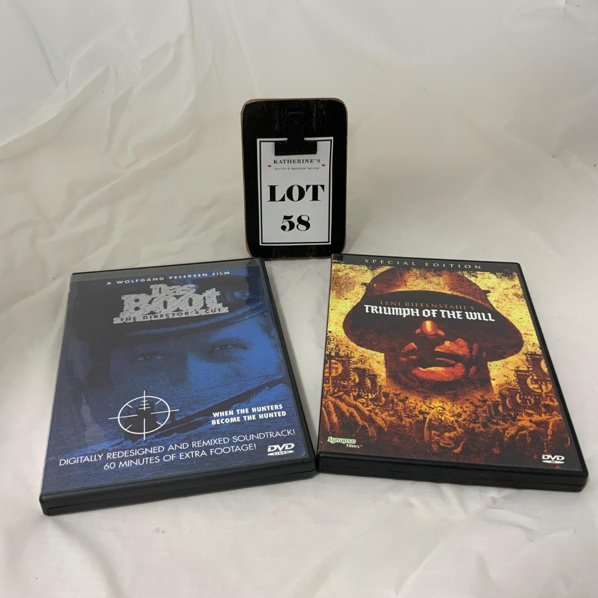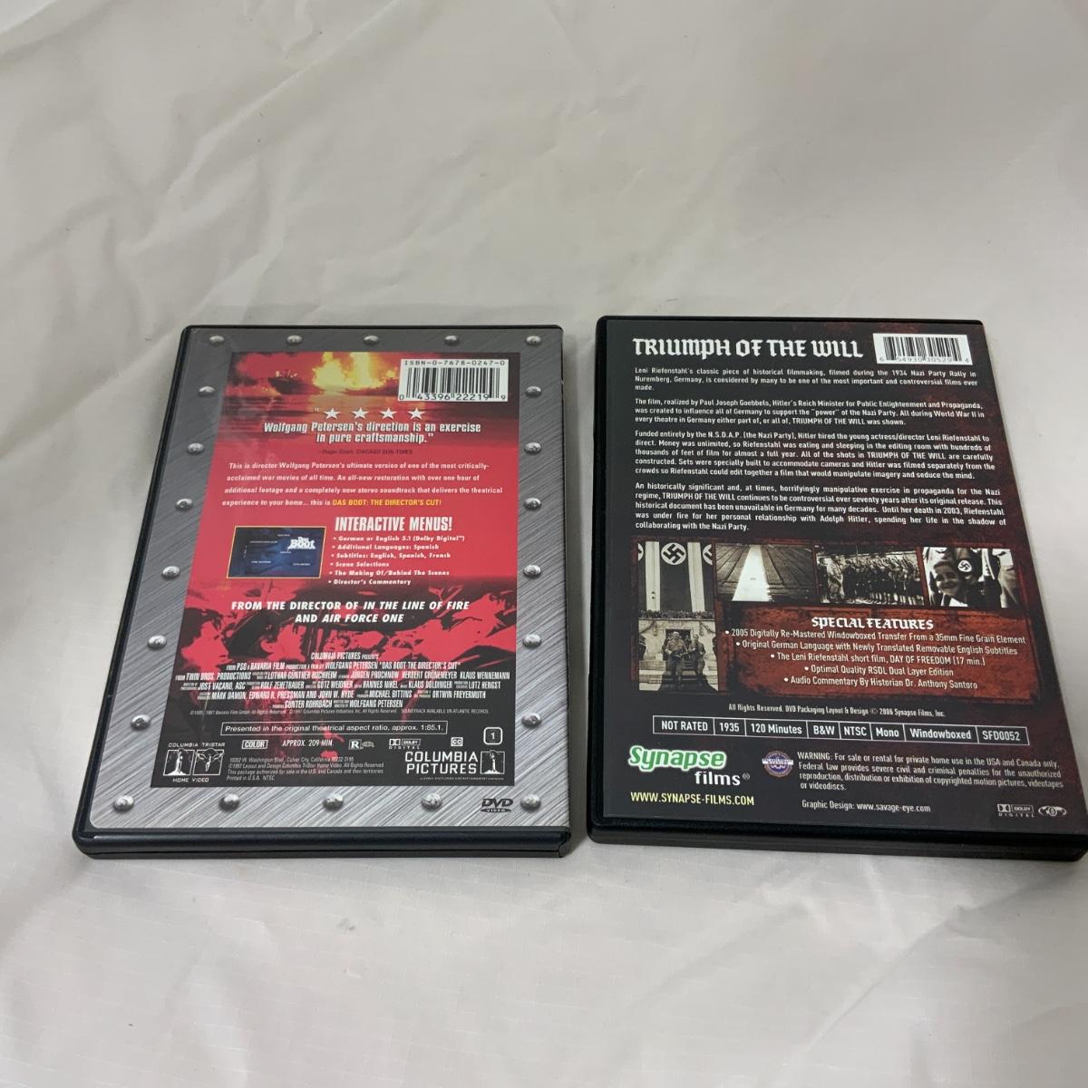 From the Estate of Peter Radovanovich: Two DVDs to add to your collection! Das Boot and Triumph of the Will. Das Boot: A German submarine patrols the Atlantic Ocean during World War II, manned by a crew that must contend with tense conflicts and long stretches of confined boredom. While war correspondent Werner (Herbert Grönemeyer) observes day-to-day life aboard the U-boat, the grizzled captain (Jürgen Prochnow) struggles to maintain his own motivation as he attempts to keep the ship's morale up in the face of fierce battles, intense storms and dwindling supplies. Triumph of the Will: Filmmaker Leni Riefenstahl's controversial masterwork is an artful work of propaganda showcasing German chancellor and Nazi Party leader Adolf Hitler at the 1934 Nuremberg Rally. Edited from over 60 hours' worth of raw footage shot over the course of the rally's four days, the film is visually remarkable in the way it captures the event's enormous scale. Riefenstahl's portentous filming from low angles (to make the small-framed Hitler look imposing and majestic) is often copied and parodied. Please see photos for details and condition. ::: Shipping is available on this lot. If you require shipping you must let us know at the close of the auction. We will coordinate with you after the item has been won. Shipping fees will include insurance up to or exceeding the value of all items being mailed. If you have any questions regarding this lot please contact the auctioneer either via this website, by direct email or by phone. PICK UP TIMES and other important information can be found in the TERMS and DESCRIPTION of the auction. Please take a look for pertinent information. Thanks!