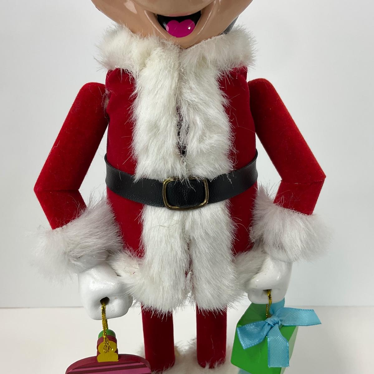 One Decorative not functional Mickey Mouse nut cracker. 14 inches tall. Appears to be in good shape Santa coat does have a slight opening in the chest unknown if it was meant to be intentional. Please see photos for details and condition. Any condition statement is given as a courtesy to a client, is an opinion, and should not be treated as a statement of fact. Reference to condition written, oral or within a condition report shall not be regarded as a full account of condition and may not include all defects, alterations, or restorations. Absence of a condition report does not imply a lot is flawless or lacking imperfections or damage. Katherine’s Auction & Appraisal Service shall have no responsibility for any error or omission. Returns shall not be accepted on the basis of condition. ::: Shipping is available on this lot. If you require shipping you must let us know at the close of the auction. We will coordinate with you after the item has been won. Shipping fees will include insurance up to or exceeding the value of all items being mailed. If you have any questions regarding this lot please contact the auctioneer either via this website, by direct email or by phone. PICK UP TIMES and other important information can be found in the TERMS and DESCRIPTION of the auction. Please take a look for pertinent information. Thanks!