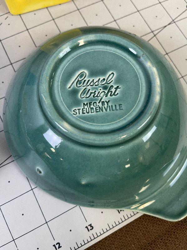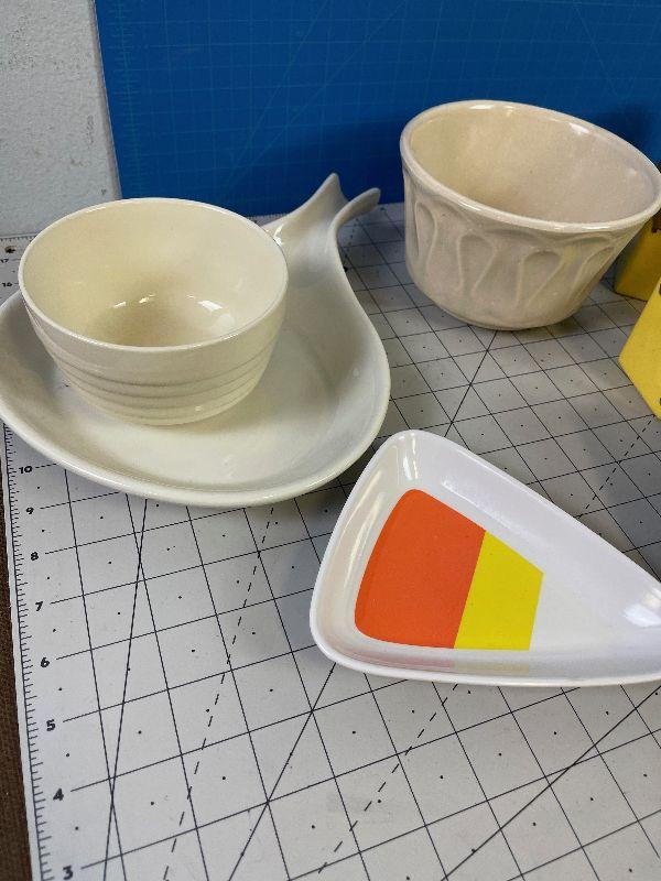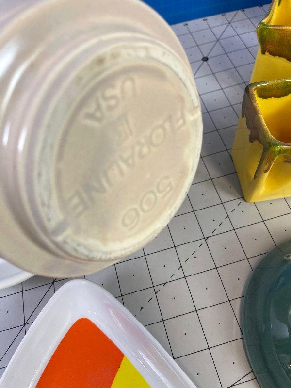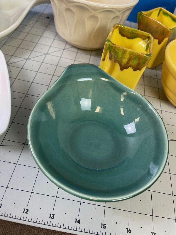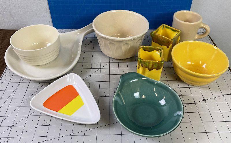 #58 Mid Century Pottery Collection (9) Pieces - Yellow White and Blue