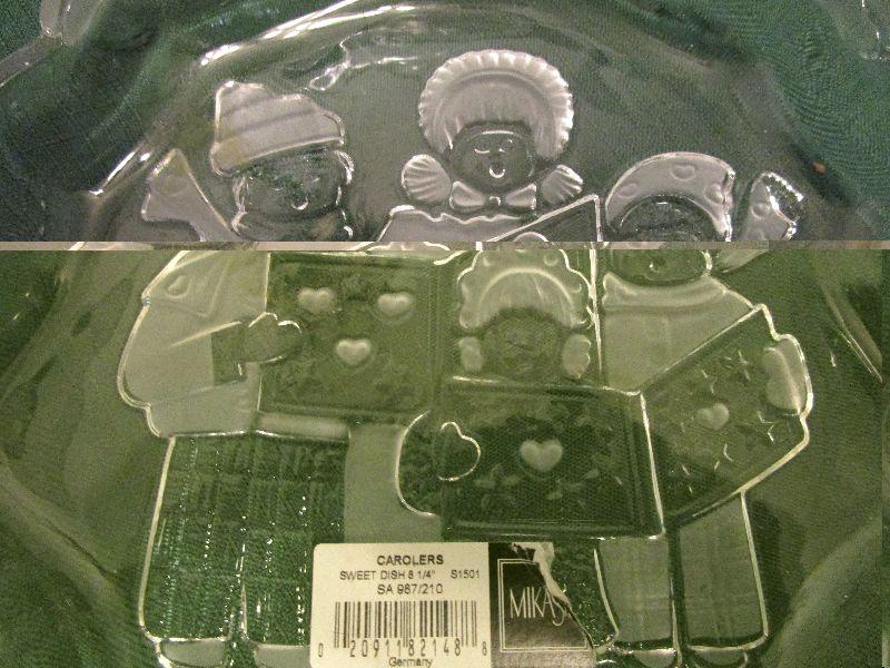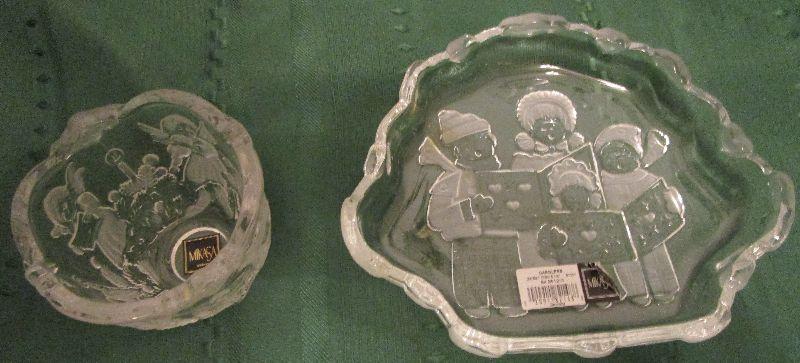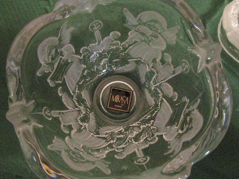 Mikasa Crystal Carolers Sweet Dish model 987/210, and Mikasa Angels holiday lights voltive