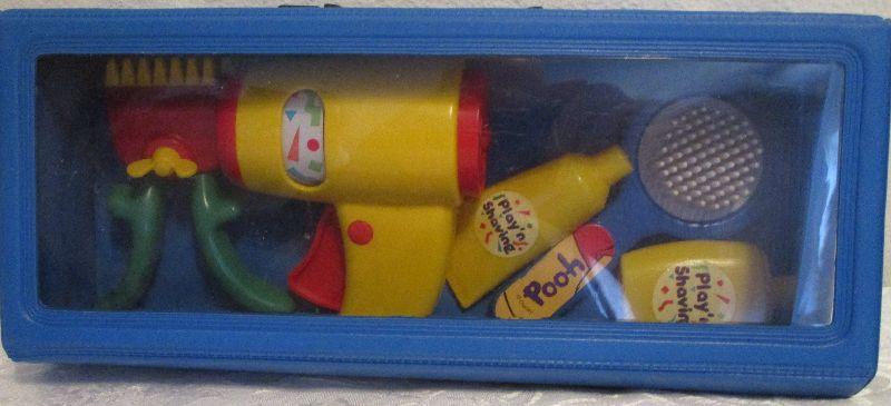 Blow dryer, hair clippers, brush, 2- play shaving cream, in a case