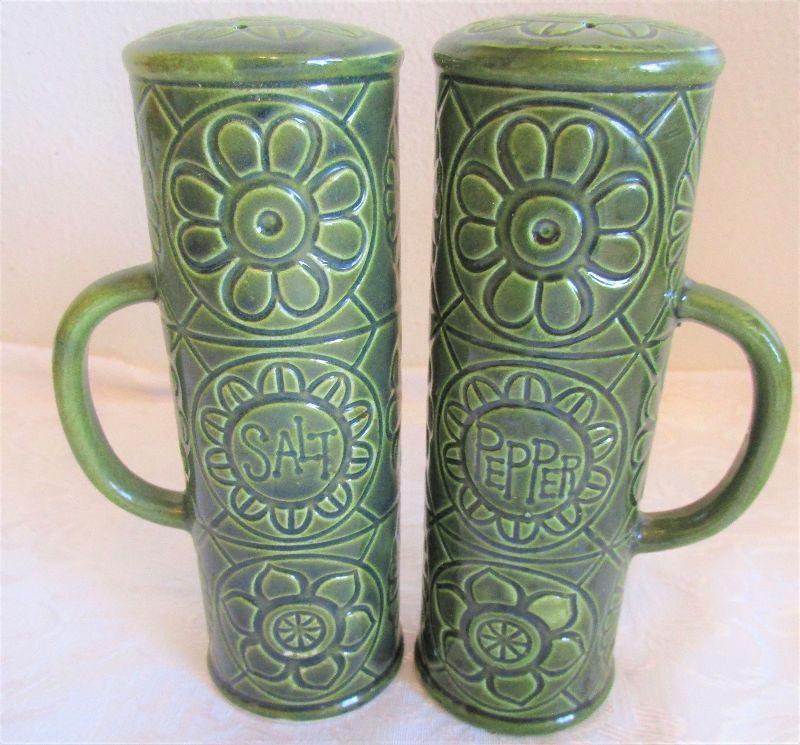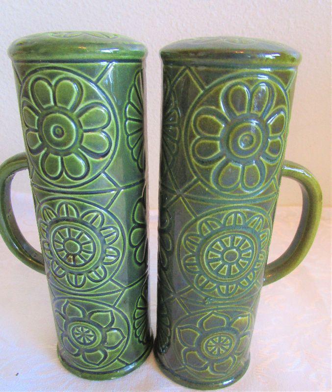 6" Dark Avocado colored Salt and Pepper Shakers