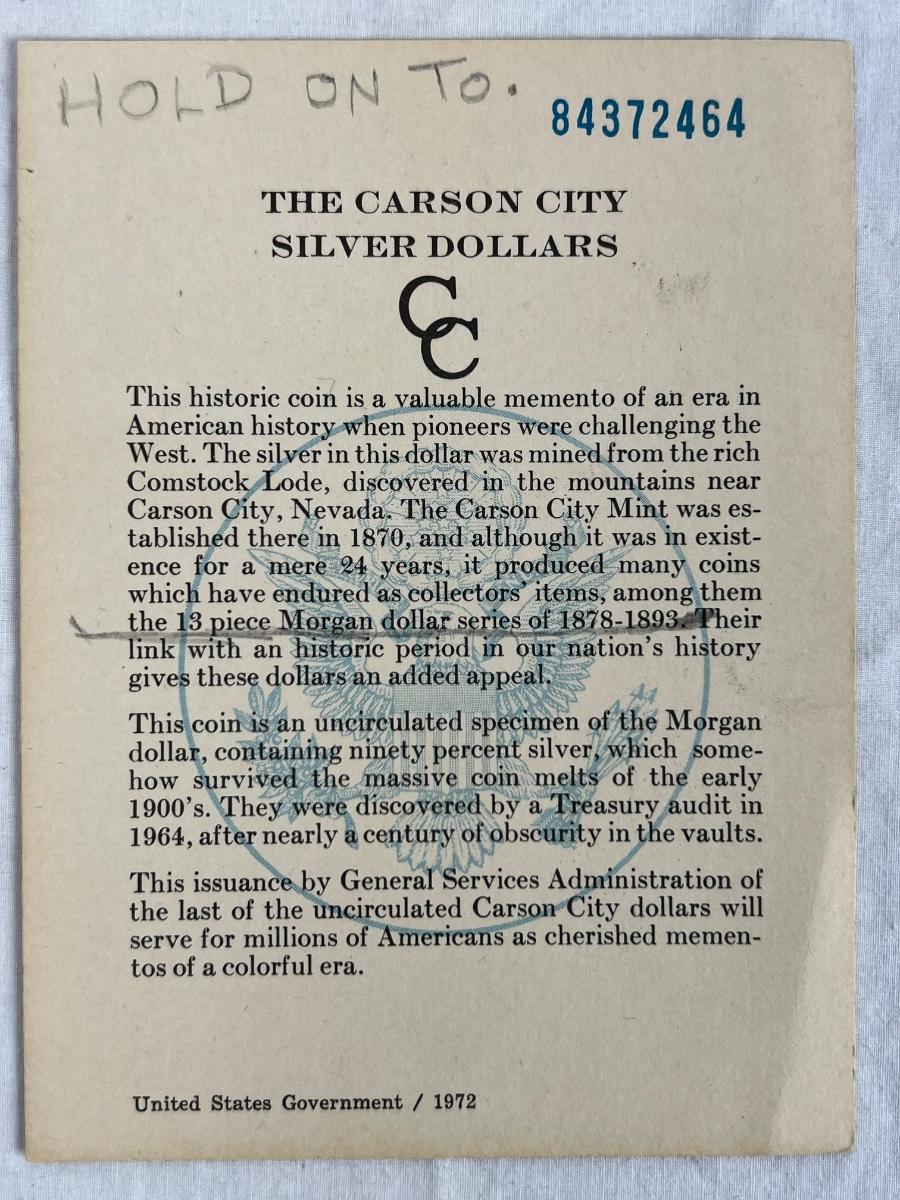 580  1884-CC Carson City Morgan Silver Dollar - GSA Uncirculated w/ Box & Stamp