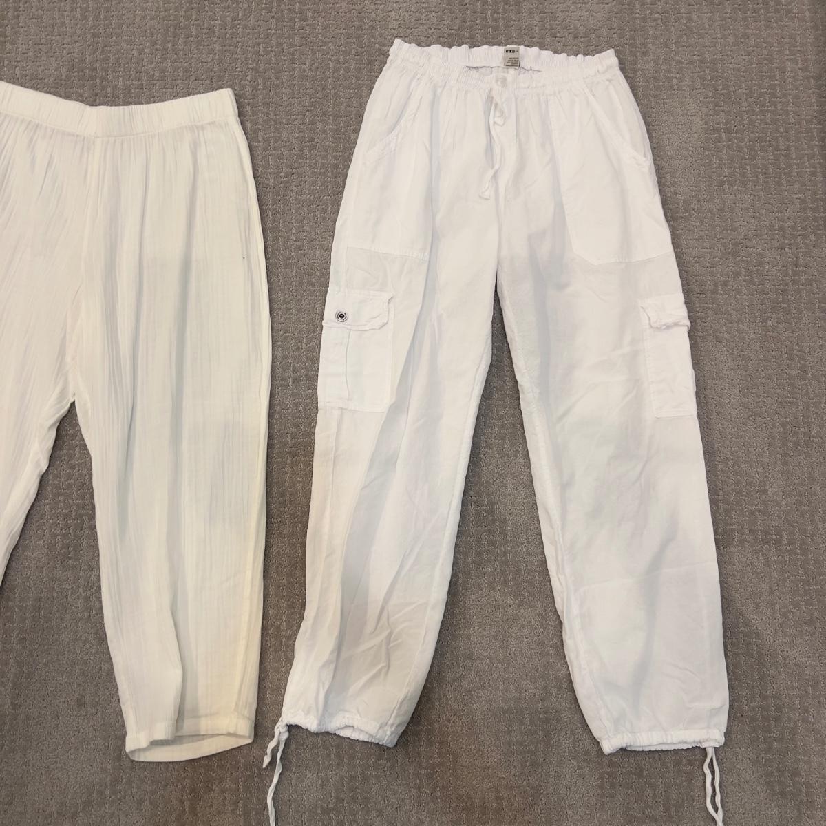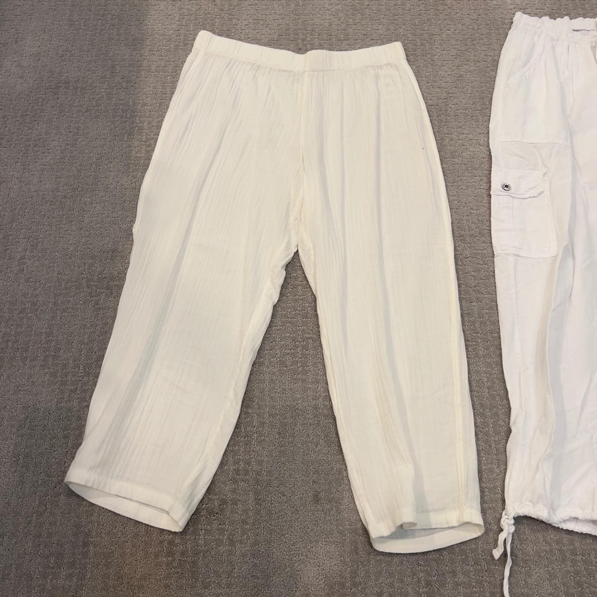 Coldwater creek white cotton pants are XL with drawstring ankle bottom