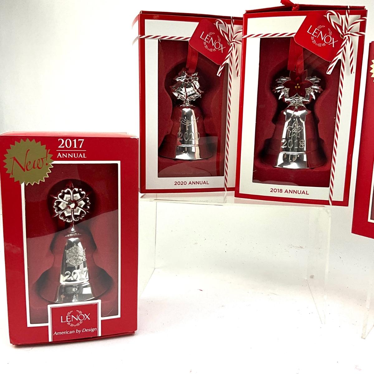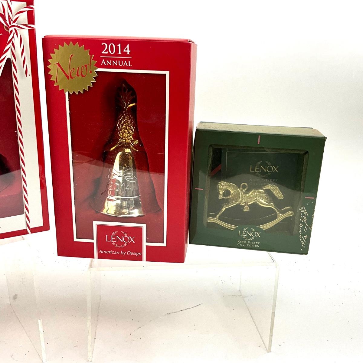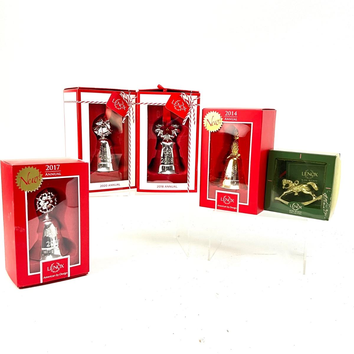 2014, 2017, 2018, 2020 musical bell ornaments by lenox with rocking horse kirk steiff ornament