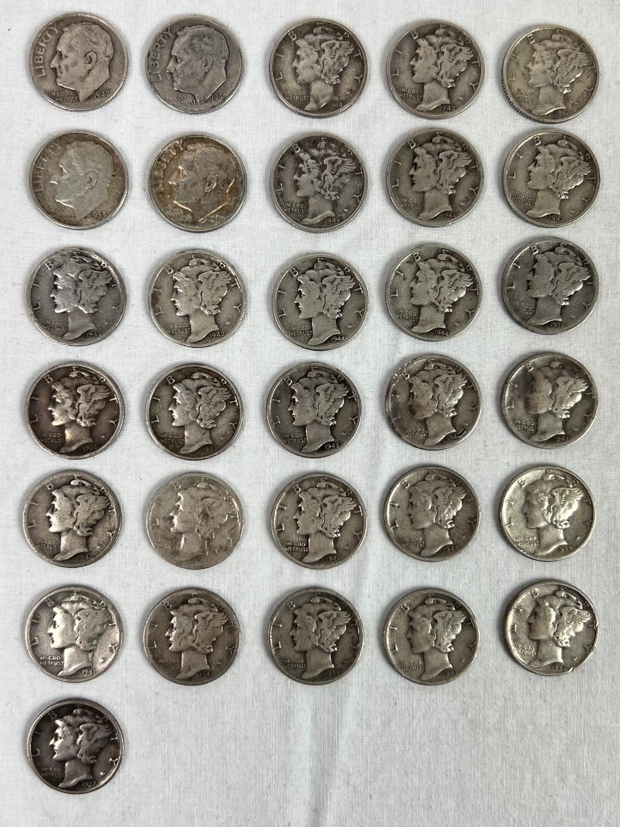 582  Lot of Vintage 1936-1945 Mercury/1946-1963 Roosevelt Dimes