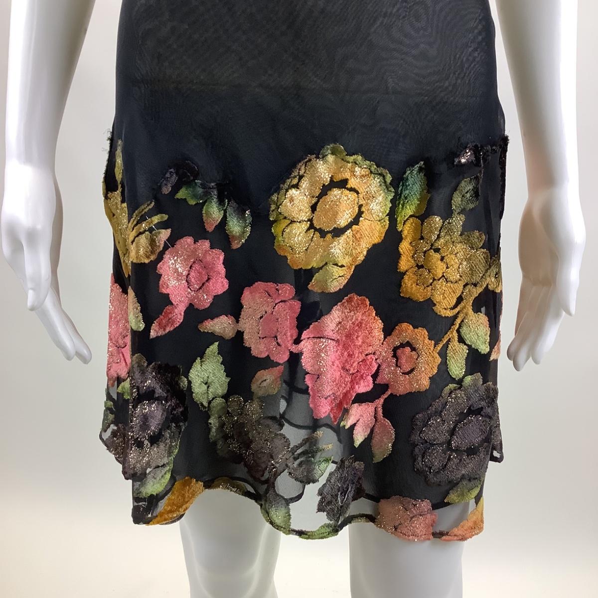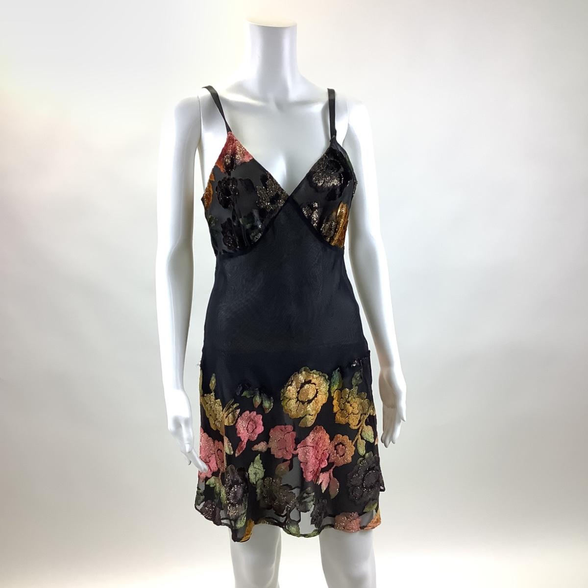 583 Victoria's Secret Gold Label Velvet Floral Black Slip Dress