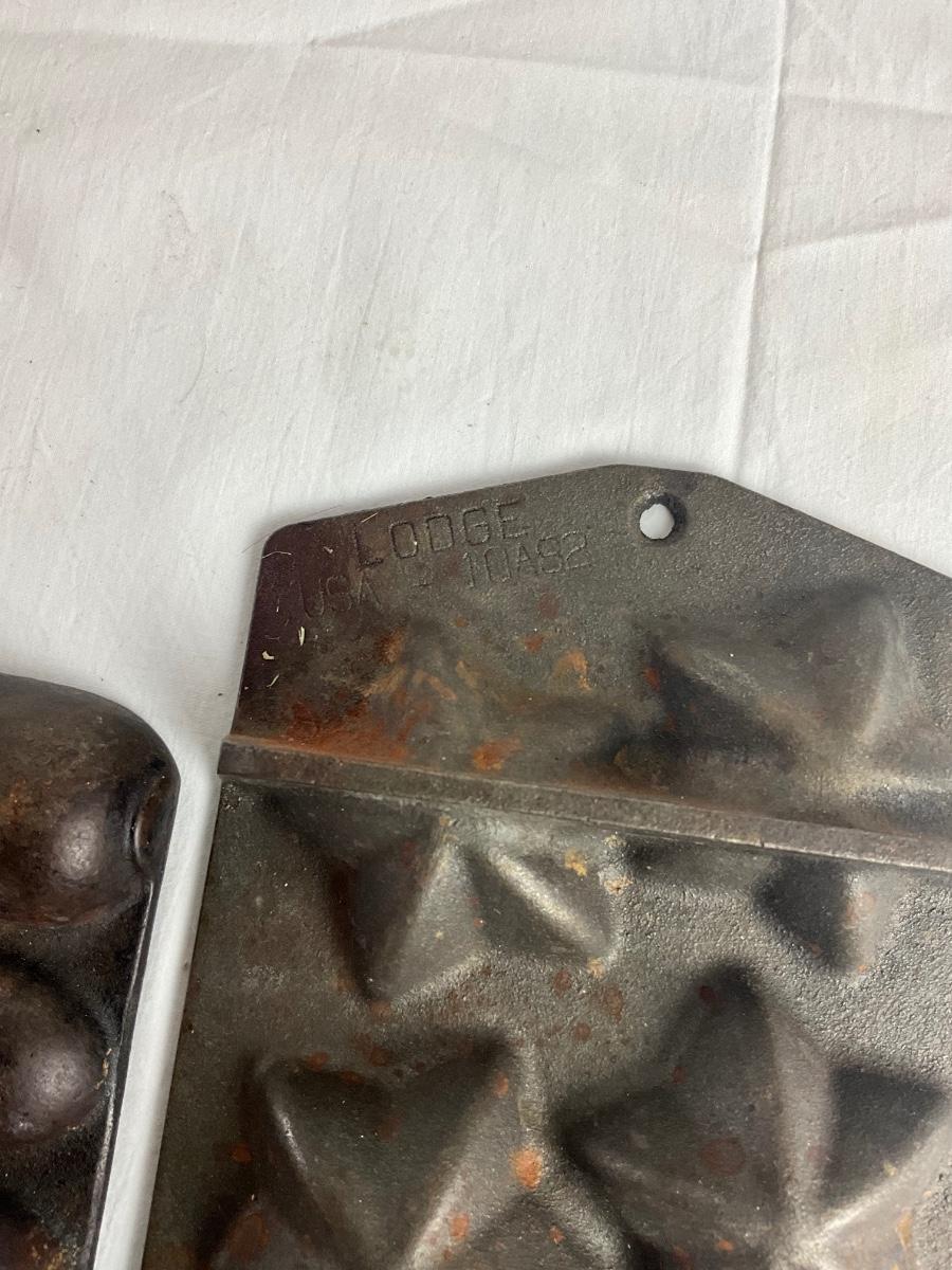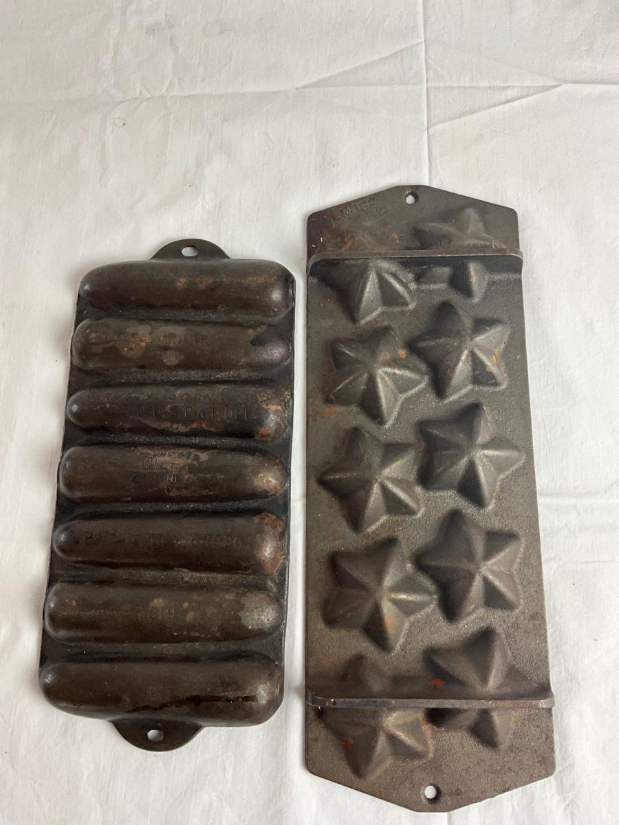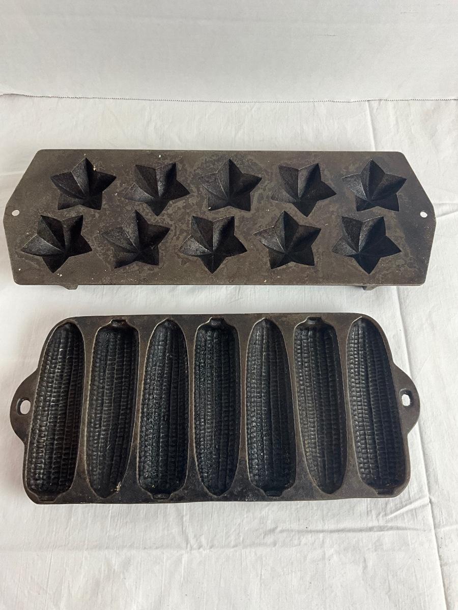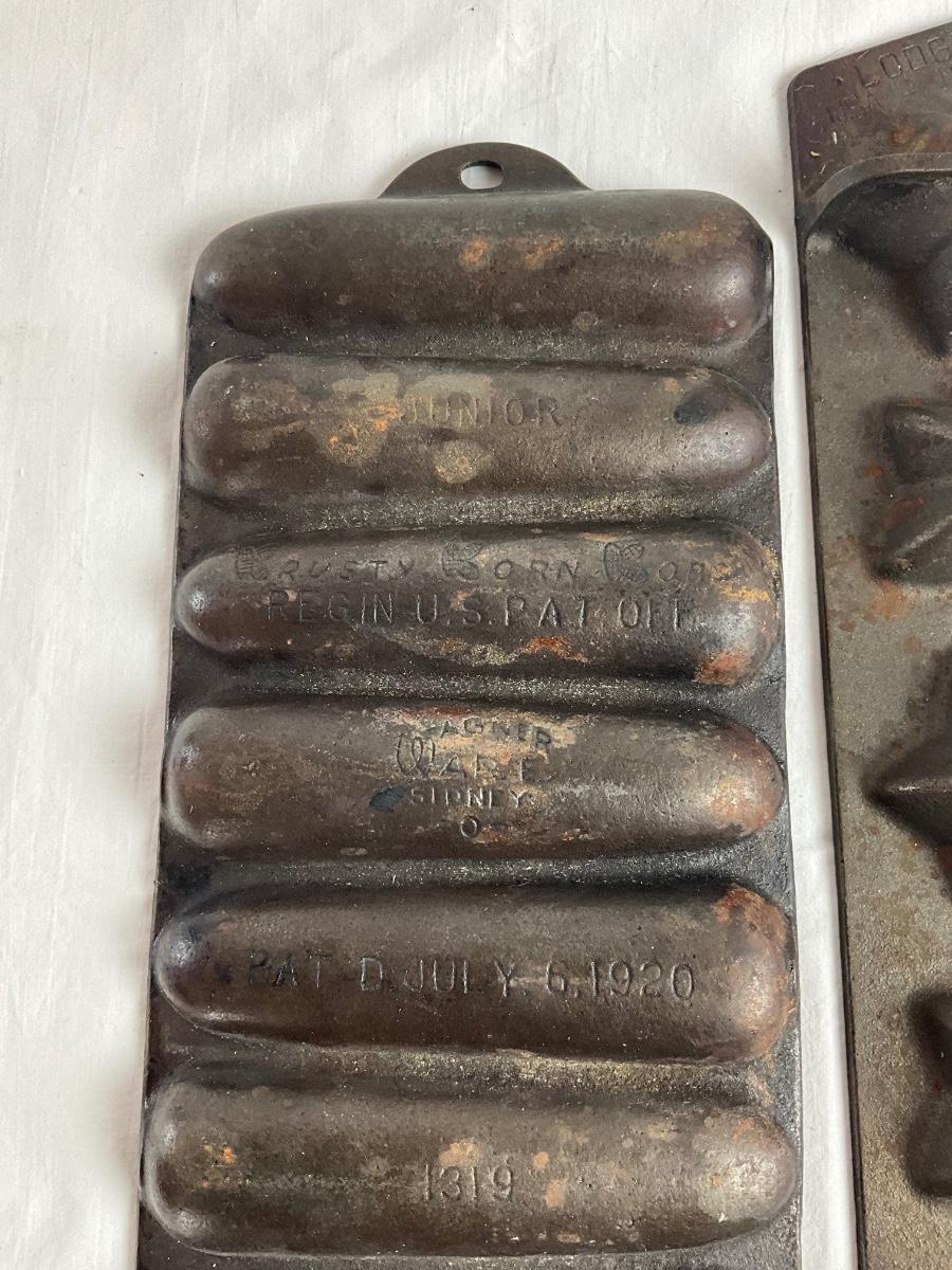 Wagner Ware & LODGE Cast Iron LOT includes Corn bread mold 13' x 6" and LODGE 10A52 star mold pan-16"w x 6"D.
