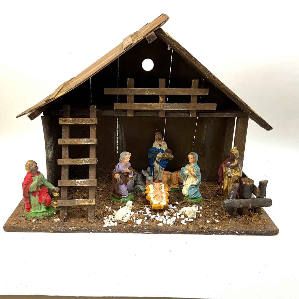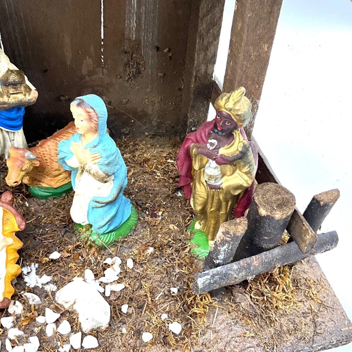 586 Vintage Italian Chalkware Nativity Scene Creche