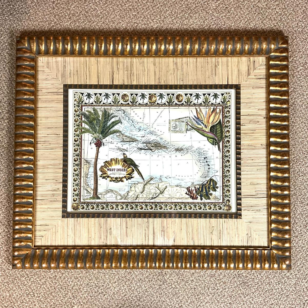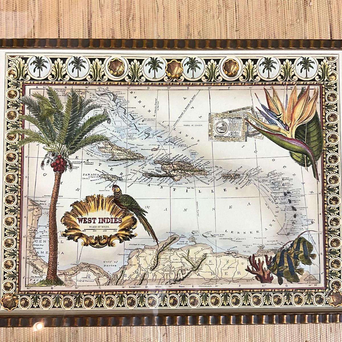 593 West Indies Map Print in Gold Frame