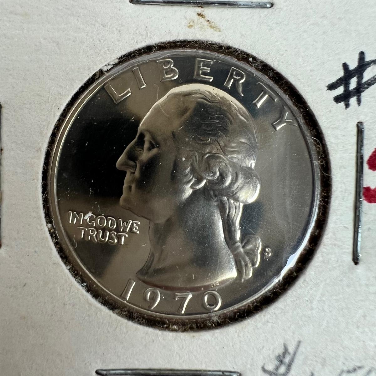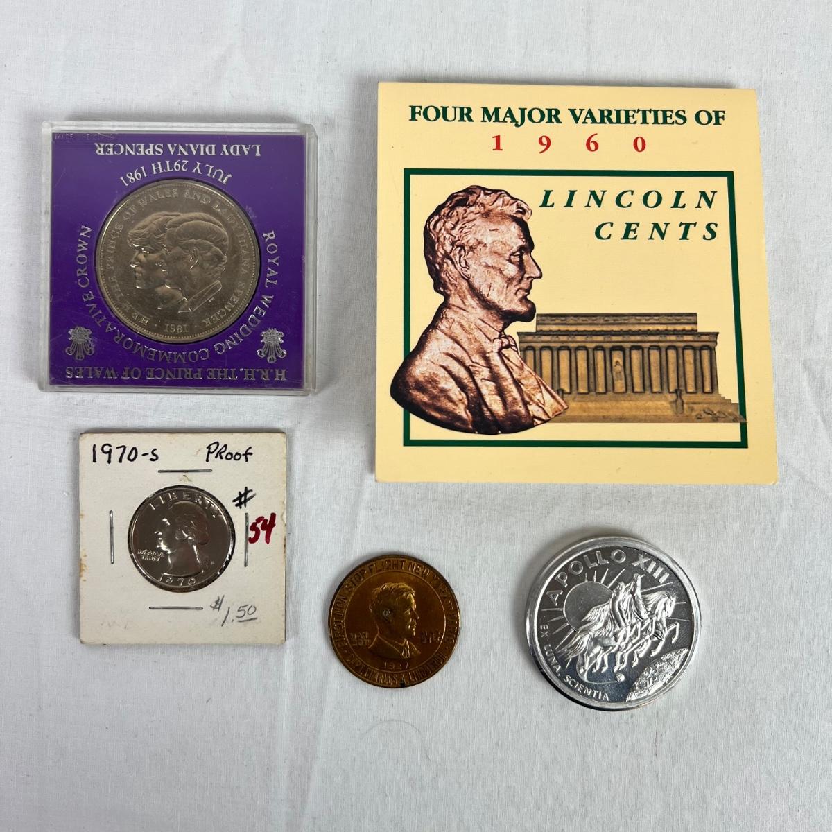 587 4 Major Varieties of 1960 Lincoln Cents P&D Mint/ 1970-S Proof Washington Quarter/ 1927 Lucky Lindberg Spirit of St. Louis Bronze Coin/ 1981 Elizabeth II British 25 New Pence