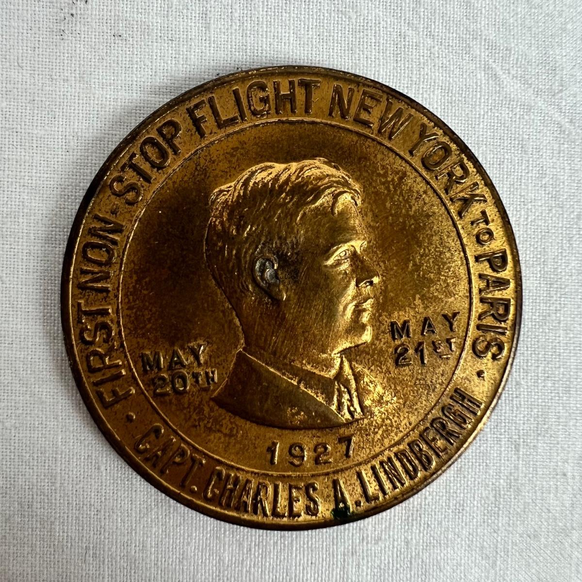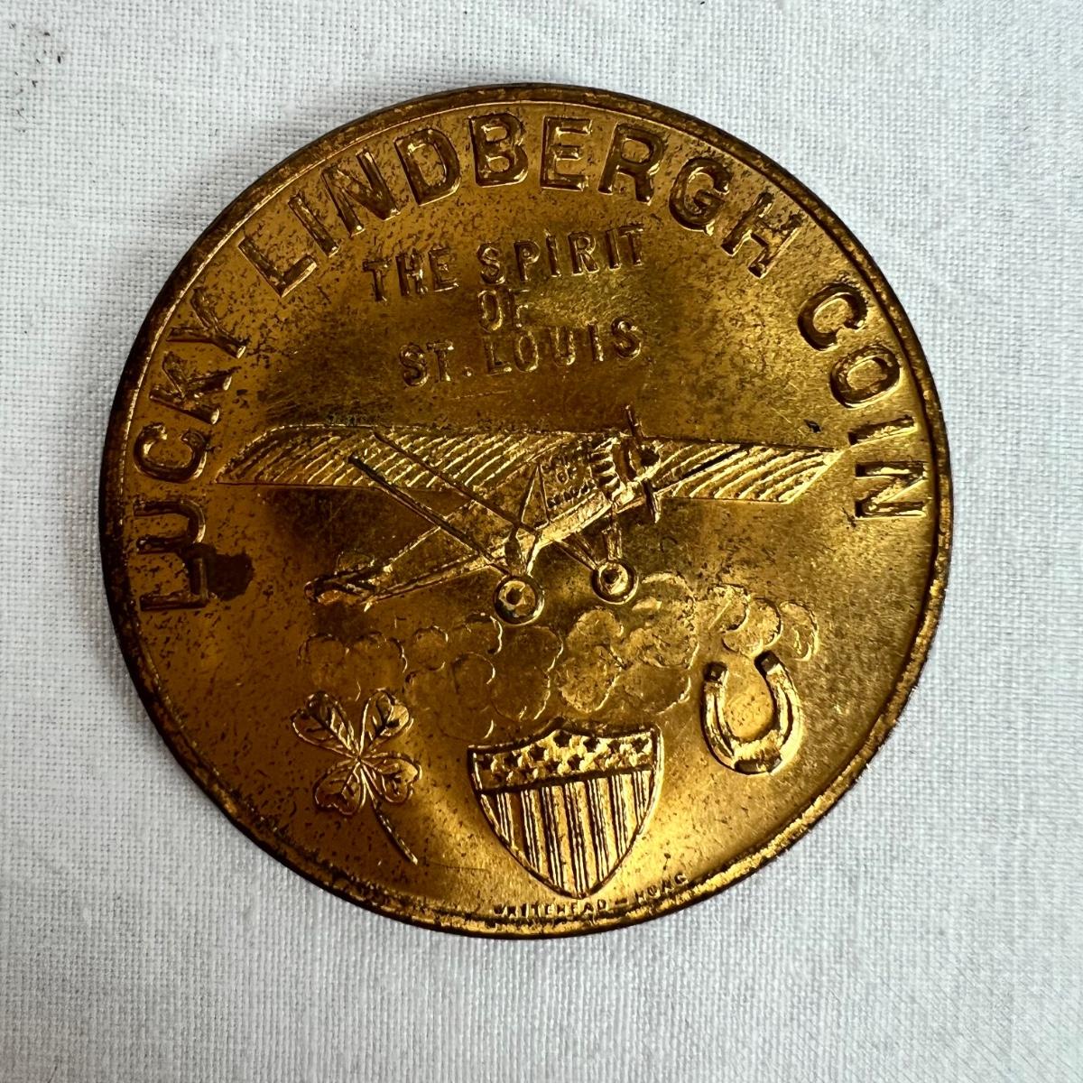 1927 Lucky Lindberg Spirit of St. Louis Bronze Coin Medal.