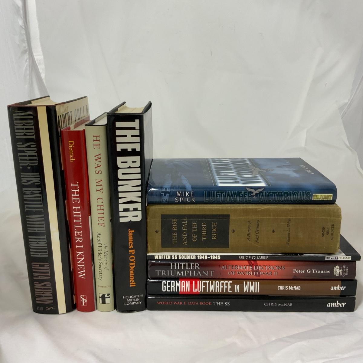 From the Estate of Peter Radovanovich: 10 books about WW2 Germany, Hitler and the 3rd Reich. Books included are: The SS; The essential facts and figures for Himmler’s Stormtroopers | German Luftwaffe in WWII by Chris McNab | An Alternate History; Luftwaffe Victorious by Mike Spick | The Rise and Fall of the Third Reich by William L Shirer | Waffen SS Soldier 1940-1945 by Bruce Quarrie and Jeffrey Burn | Hitler Triumphant Alternate Decisions of World War II edited by Peter G Tsouras | The Bunker by James P O’Donnell | He Was My Chief by Christa Schroeder | The Hitler I knew by Otto Dietrich | Albert Speer: His Battle with Truth by Gitta Sereny. Nice pieces of history as well as historical fiction. Please see photos for details and condition. ::: Shipping is available on this lot. If you require shipping you must let us know at the close of the auction. We will coordinate with you after the item has been won. Shipping fees will include insurance up to or exceeding the value of all items being mailed. If you have any questions regarding this lot please contact the auctioneer either via this website, by direct email or by phone. PICK UP TIMES and other important information can be found in the TERMS and DESCRIPTION of the auction. Please take a look for pertinent information. Thanks!