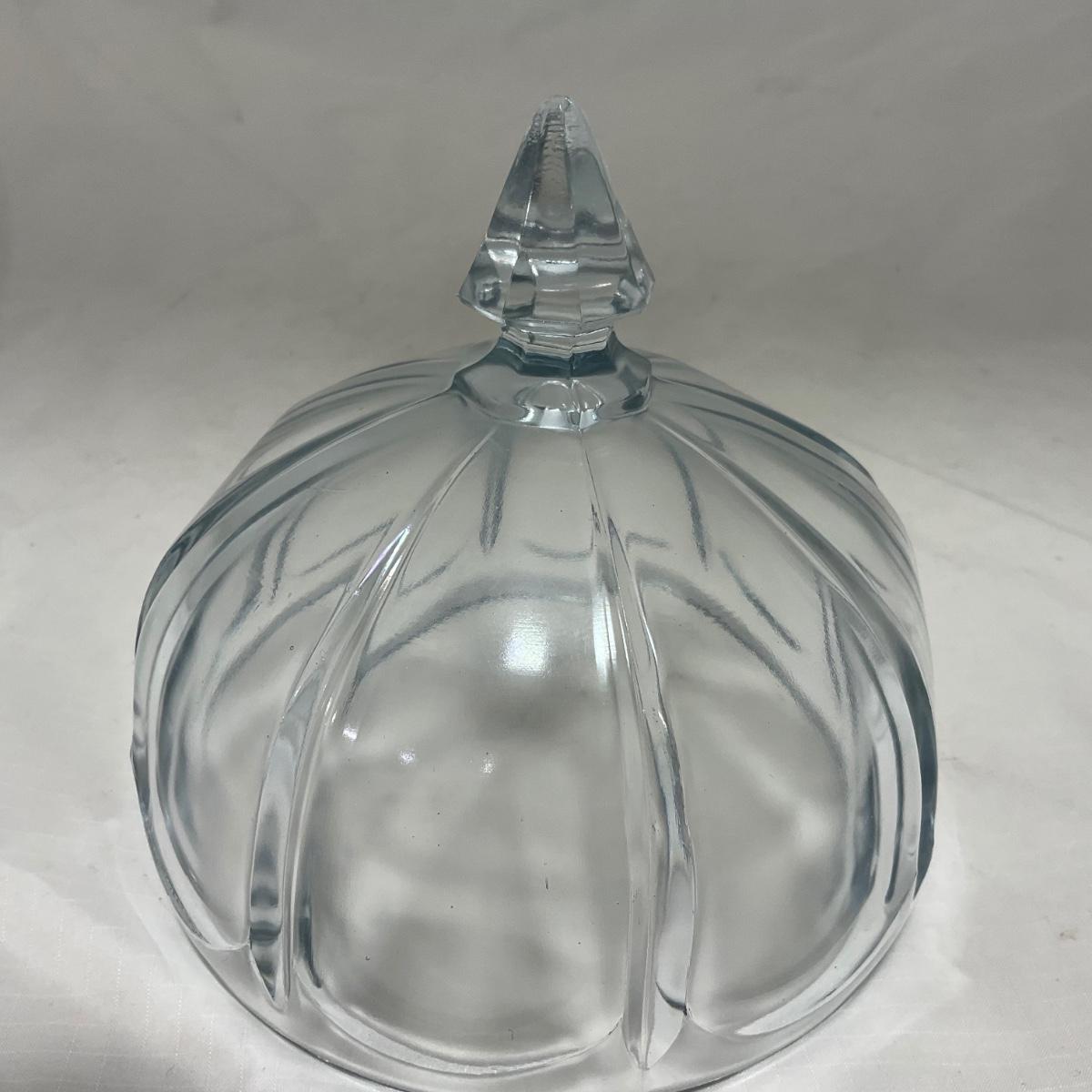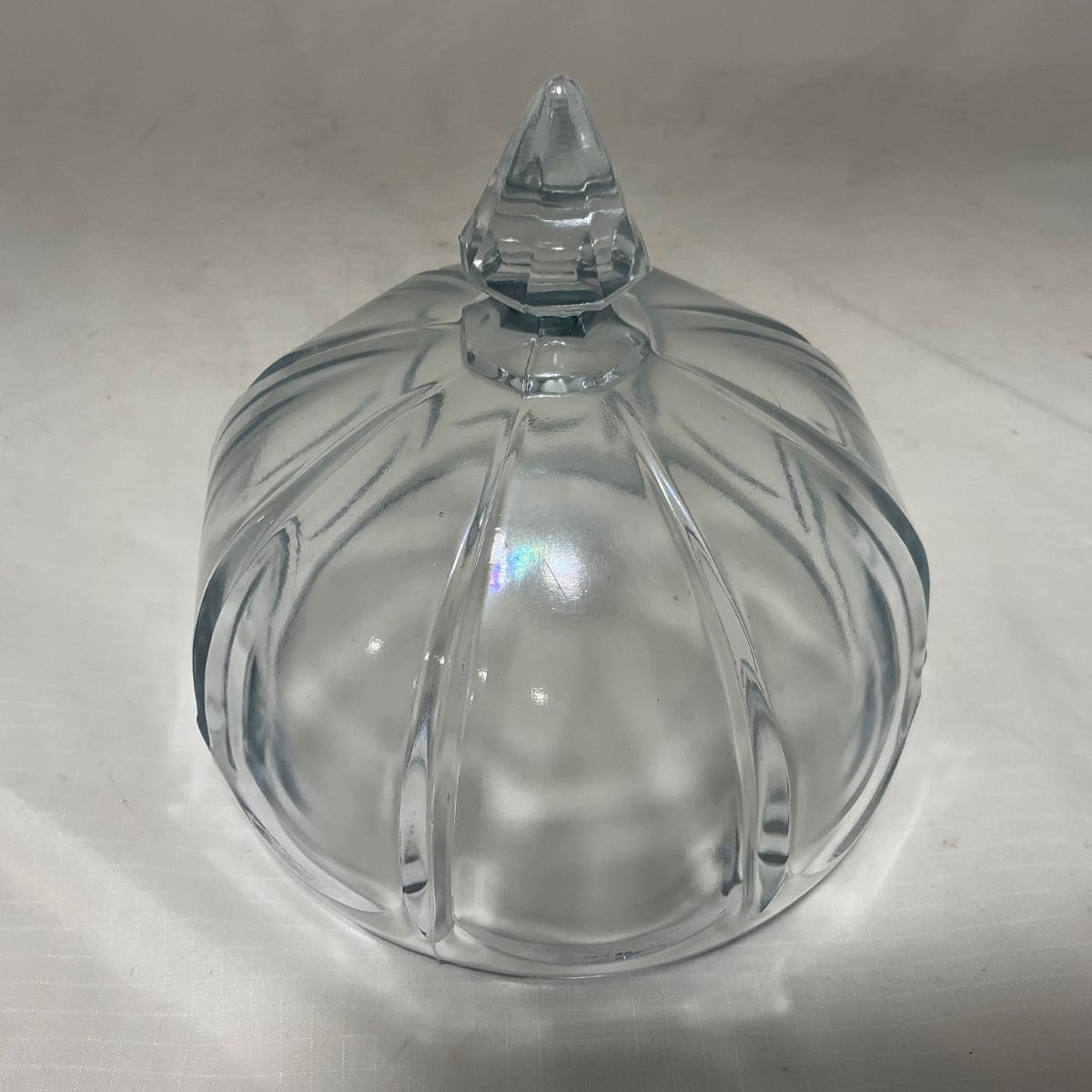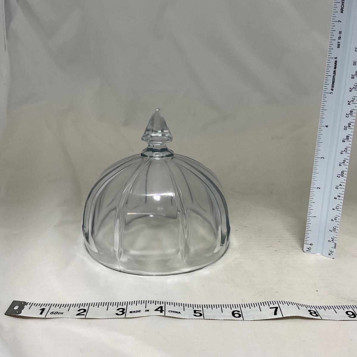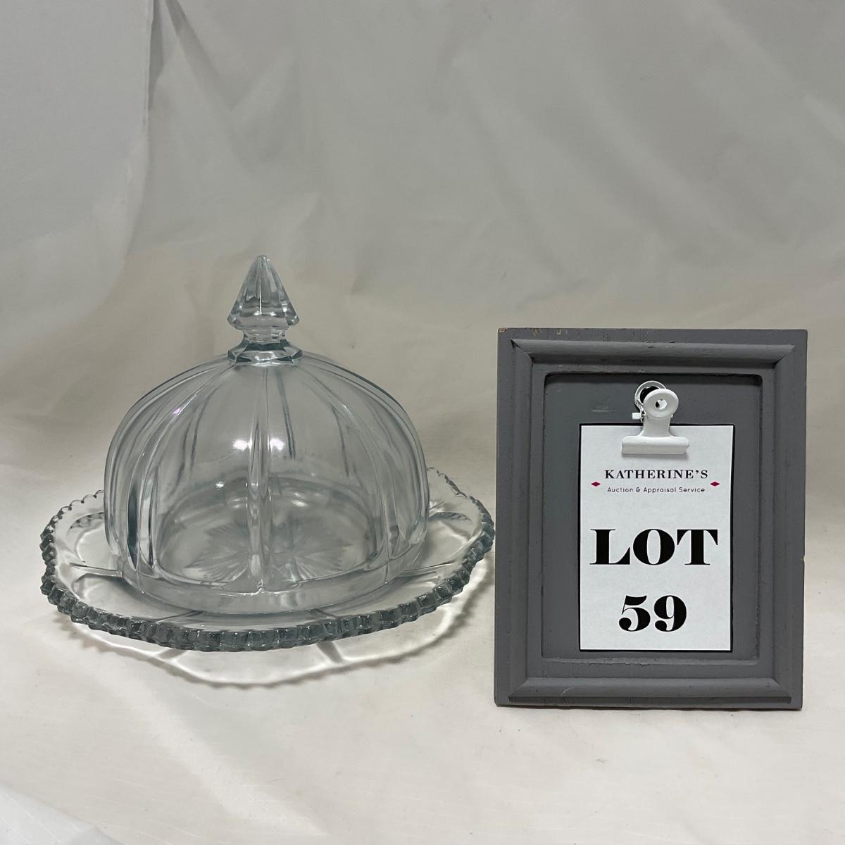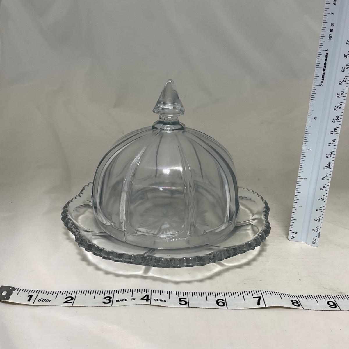 This clear glass covered butter dish is a fun classic butter dish style and a perfect addition to any collection. Please see photos for details and condition. ::: Shipping is available on this lot. If you require shipping you must let us know at the close of the auction. We will coordinate with you after the item has been won. Shipping fees will include insurance up to or exceeding the value of all items being mailed. If you have any questions regarding this lot please contact the auctioneer either via this website, by direct email or by phone. PICK UP TIMES and other important information can be found in the TERMS and DESCRIPTION of the auction. Please take a look for pertinent information. Thanks!