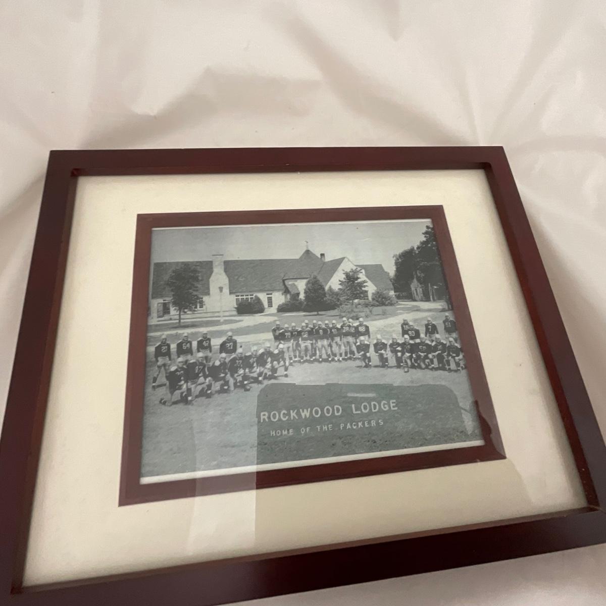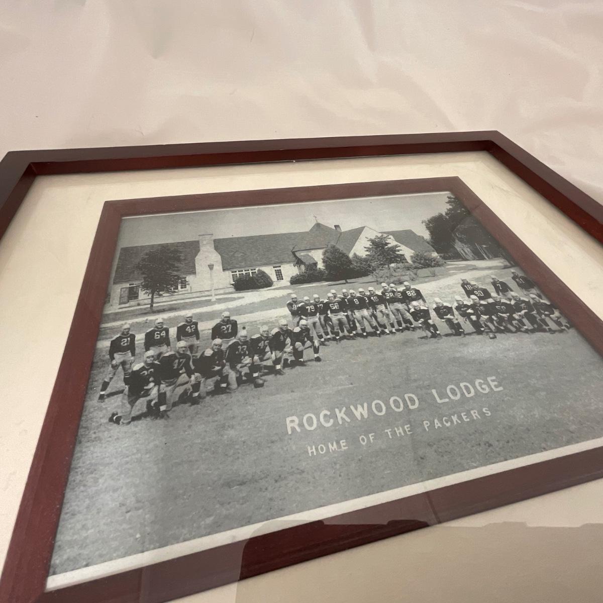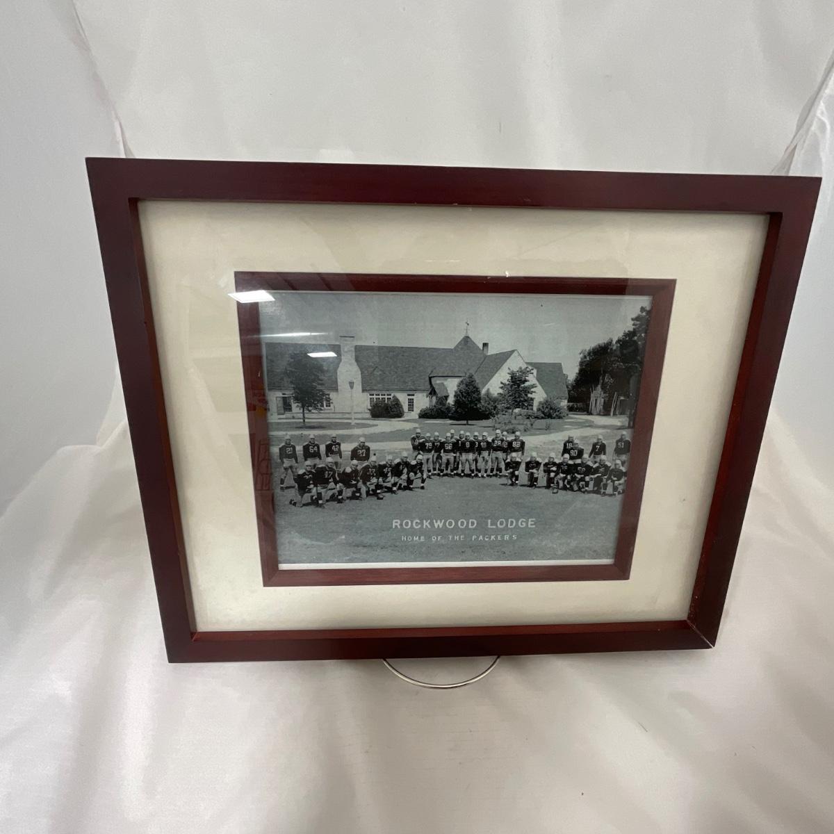 One 12 inches by 15 inches printed copy of the Green Bay Packers at Rockwood Lodge. This is not old however would make a wonderful filler item with its nice frame. Please see photos for details and condition. ::: Shipping is available on this lot. If you require shipping you must let us know at the close of the auction. We will coordinate with you after the item has been won. Shipping fees will include insurance up to or exceeding the value of all items being mailed. If you have any questions regarding this lot please contact the auctioneer either via this website, by direct email or by phone. PICK UP TIMES and other important information can be found in the TERMS and DESCRIPTION of the auction. Please take a look for pertinent information. Thanks!