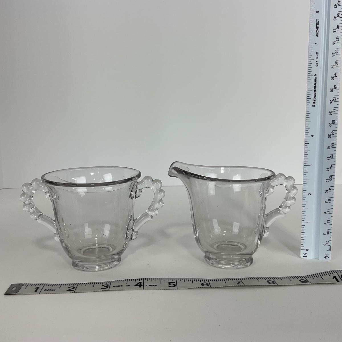 Three piece set of Candlewick including creamer, sugar, and tray. Please see photos for details and condition. ::: Shipping is available on this lot. If you require shipping you must let us know at the close of the auction. We will coordinate with you after the item has been won. Shipping fees will include insurance up to or exceeding the value of all items being mailed. If you have any questions regarding this lot please contact the auctioneer either via this website, by direct email or by phone. PICK UP TIMES and other important information can be found in the TERMS and DESCRIPTION of the auction. Please take a look for pertinent information. Thanks!