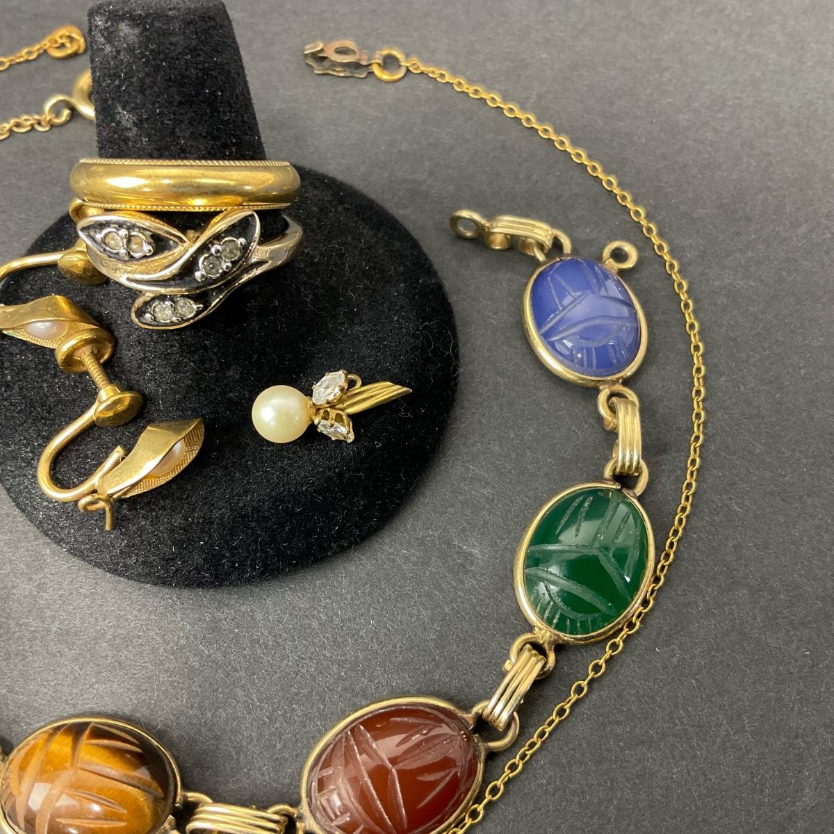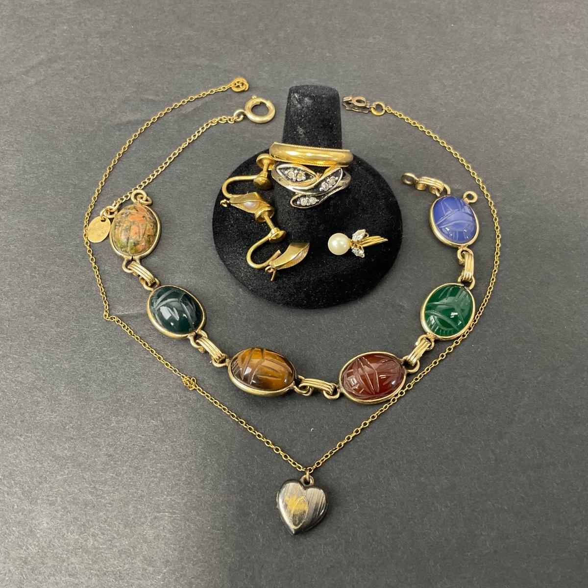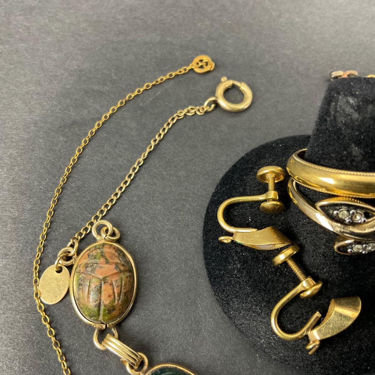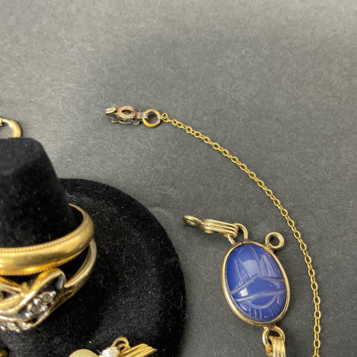 Miscellaneous assortment of gold filled pieces. Please see photos for details and condition. Any condition statement is given as a courtesy to a client, is an opinion, and should not be treated as a statement of fact. Reference to condition written, oral or within a condition report shall not be regarded as a full account of condition and may not include all defects, alterations, or restorations. Absence of a condition report does not imply a lot is flawless or lacking imperfections or damage. Katherine’s Auction & Appraisal Service shall have no responsibility for any error or omission. Returns shall not be accepted on the basis of condition. ::: Shipping is available on this lot. If you require shipping you must let us know at the close of the auction. We will coordinate with you after the item has been won. Shipping fees will include insurance up to or exceeding the value of all items being mailed. If you have any questions regarding this lot please contact the auctioneer either via this website, by direct email or by phone. PICK UP TIMES and other important information can be found in the TERMS and DESCRIPTION of the auction. Please take a look for pertinent information. Thanks!