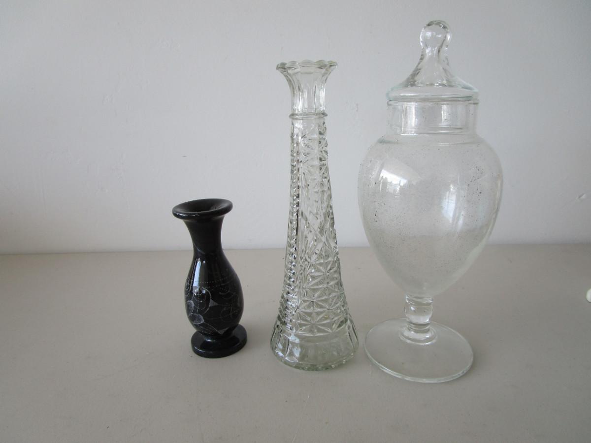 #59 Vintage Japanese marble vase, clear glass vase, candy jar
