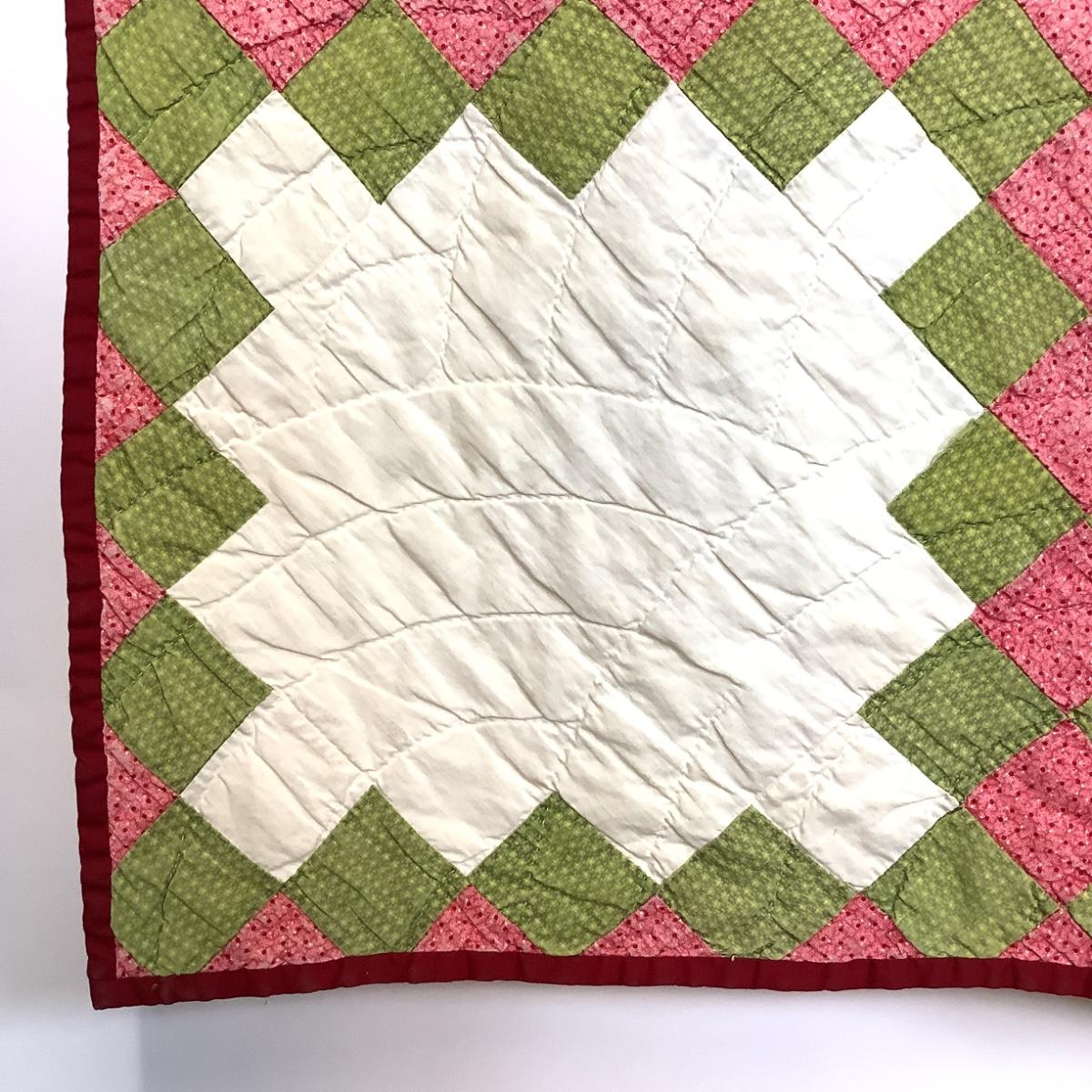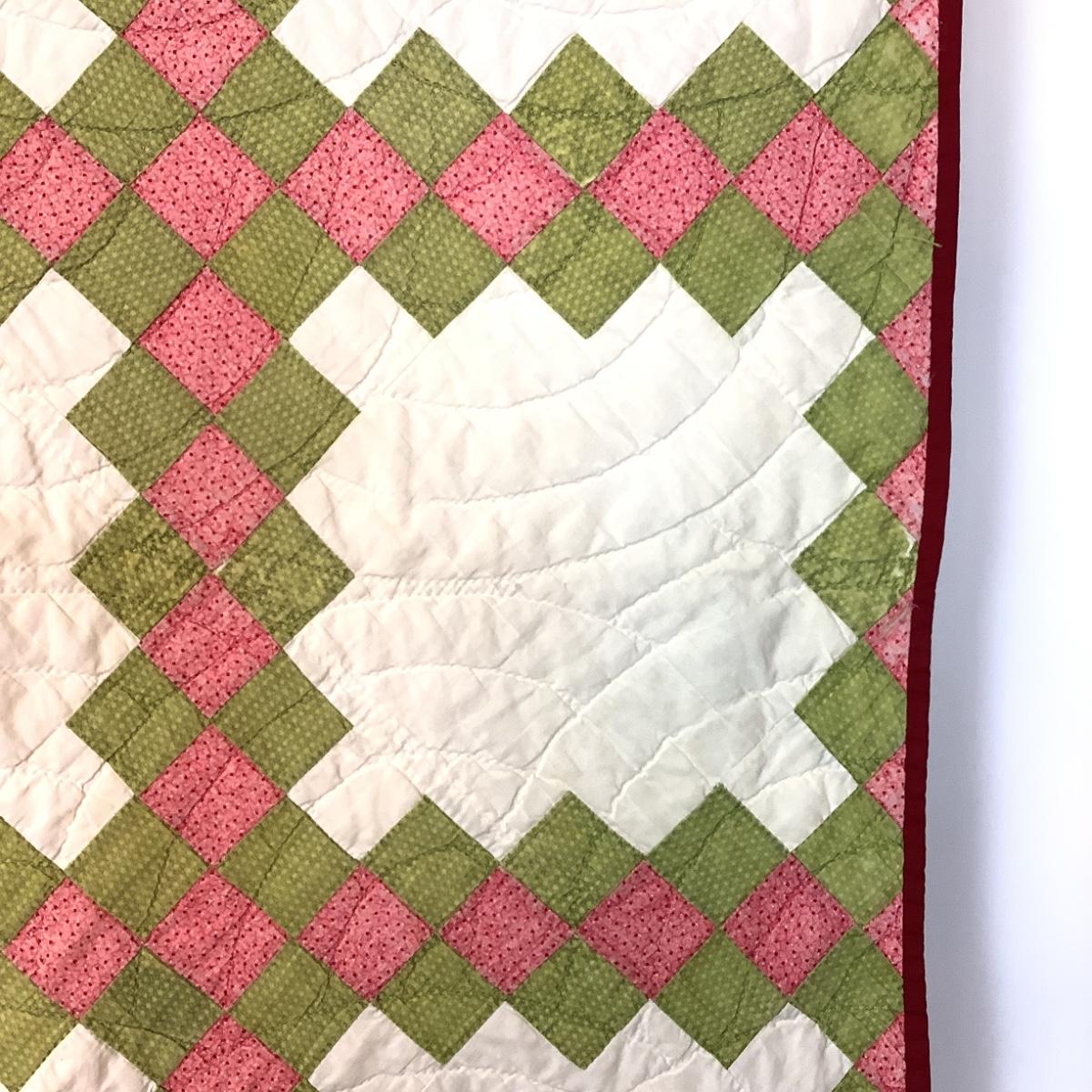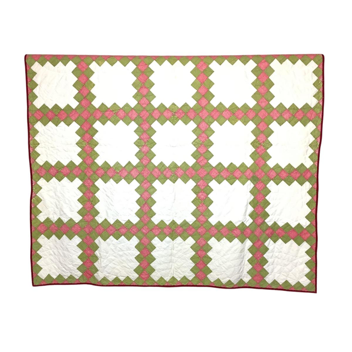 590 Vintage Handmade Double Irish Chain Green & Pink Quilt