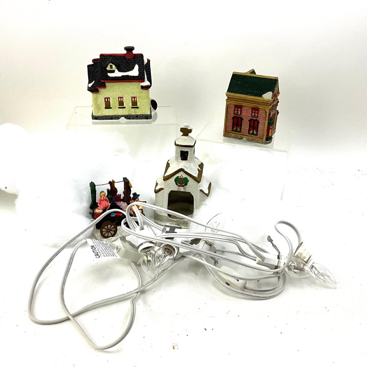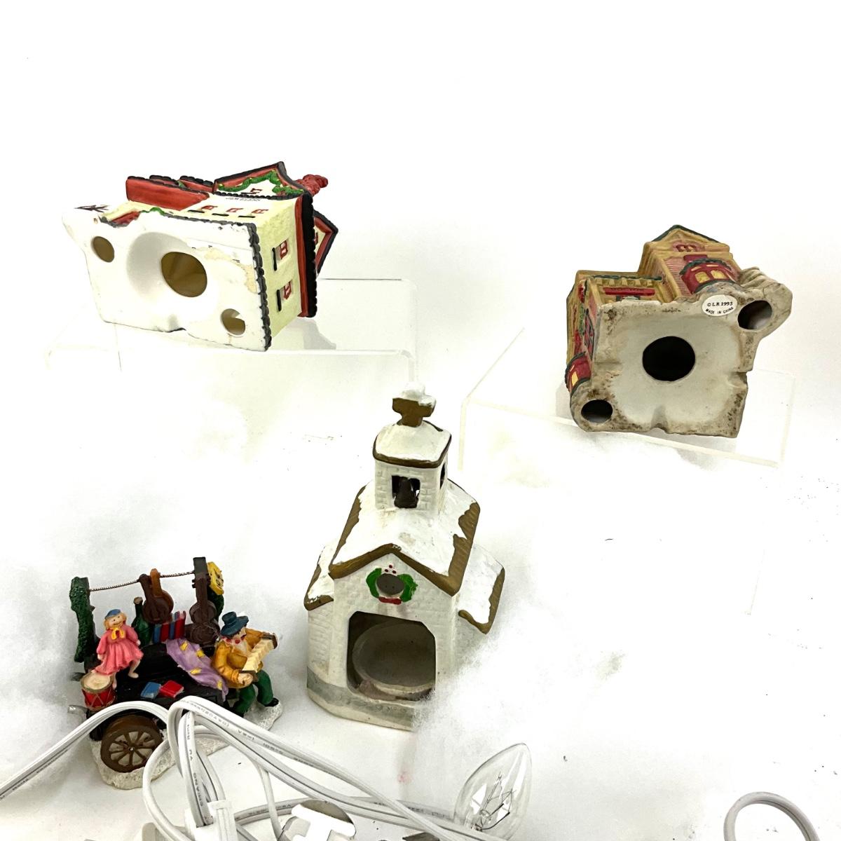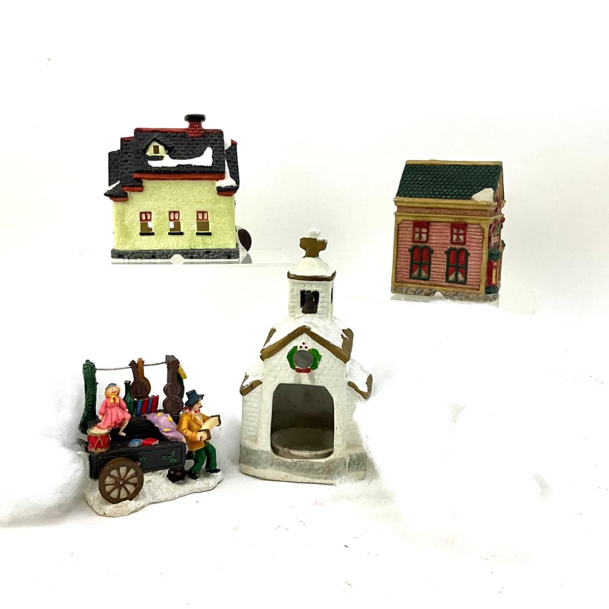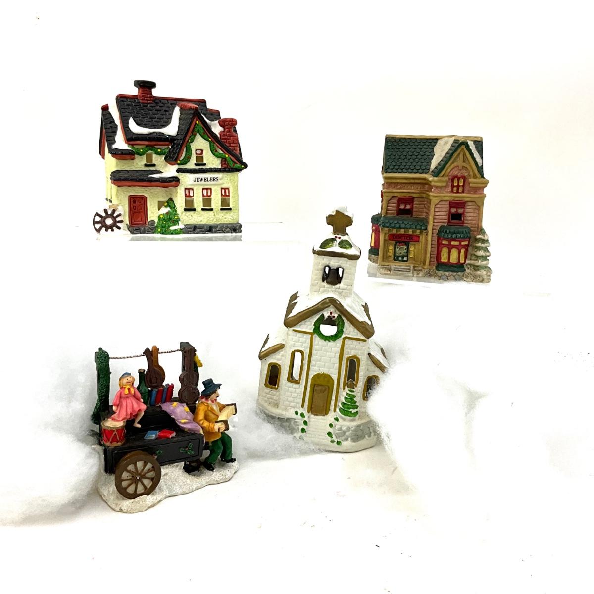 590 Set of Four Small 4" Ceramic Houses with Clown Figure