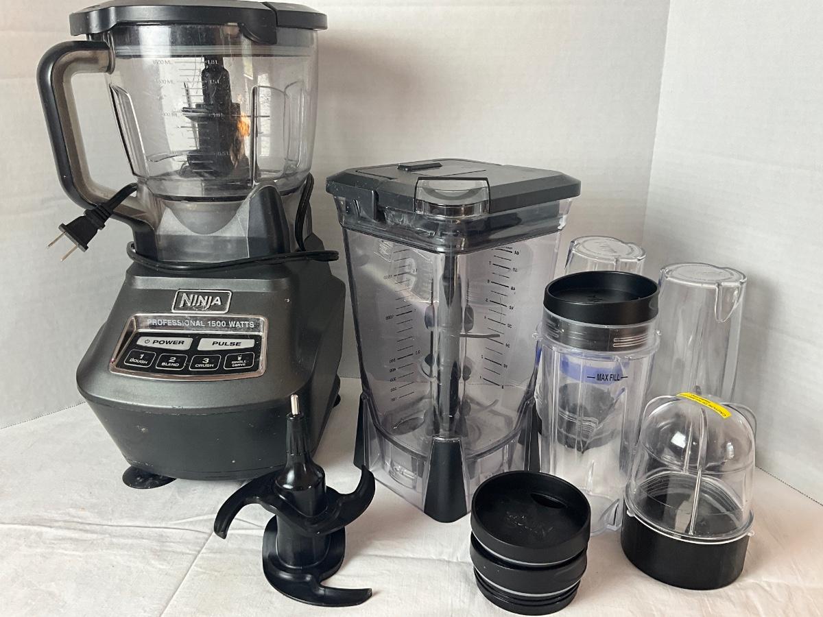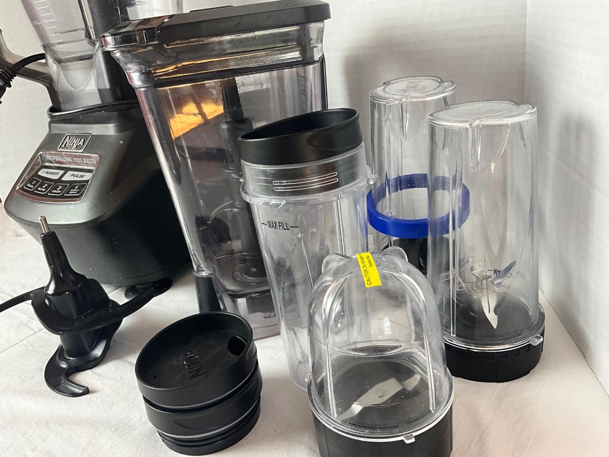 Assorted blender cups w/lids, 2 mixing pitchers & Ninja Pro 1500-tested and working.