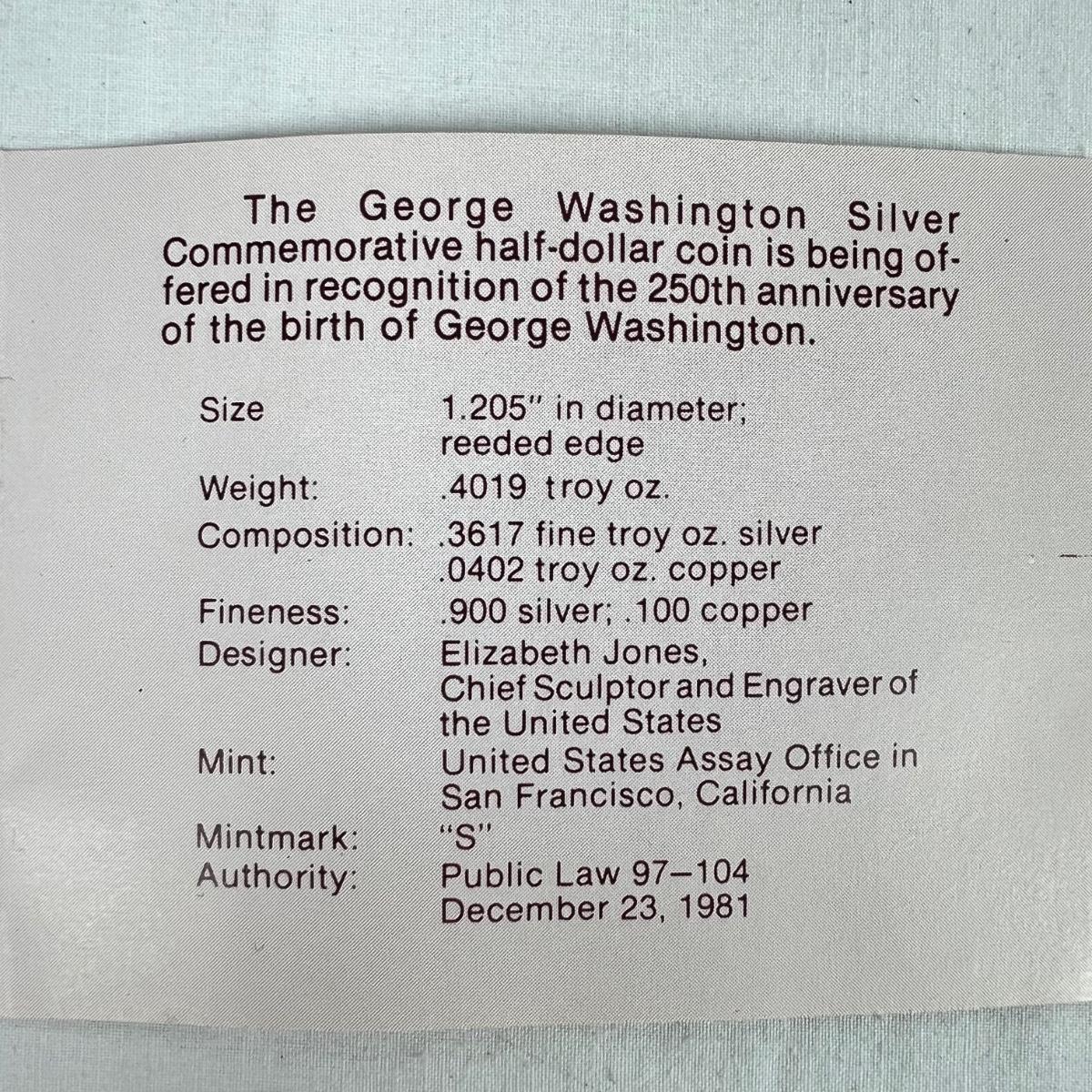 Proof 1732-1982 Commemorative Silver Half Dollar with case & Certificate of Authenticity.