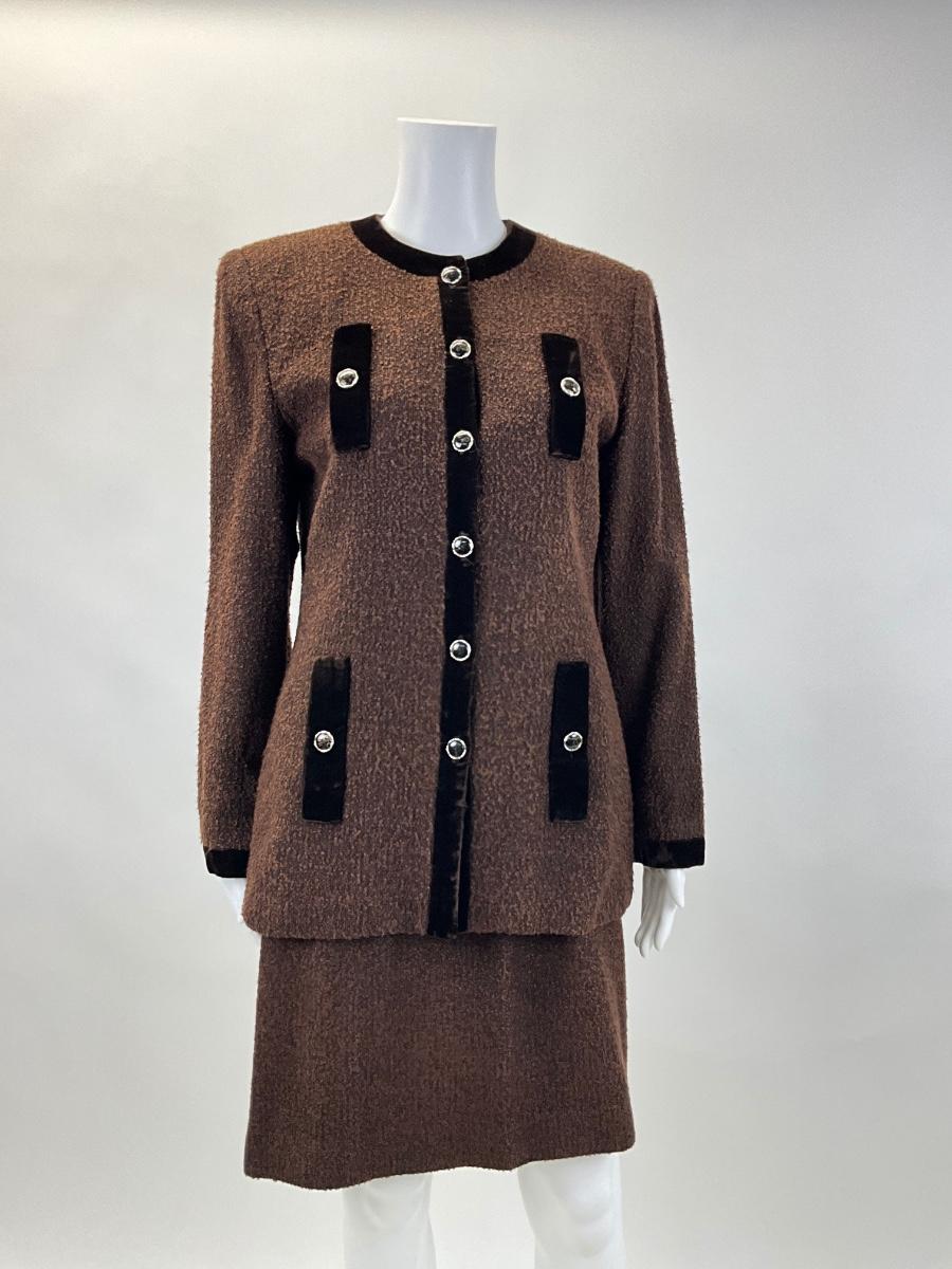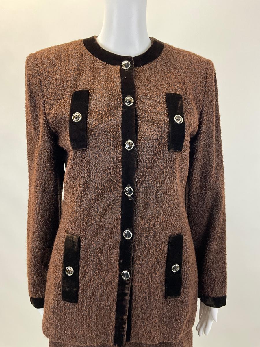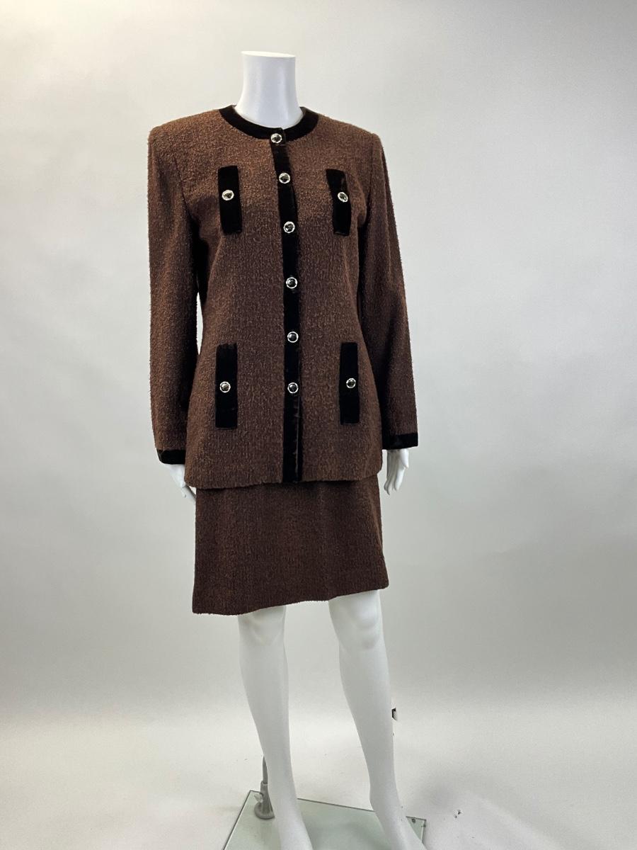 591 Vintage ELPIDA 2pc Brown Velvet Knit Skirt Set