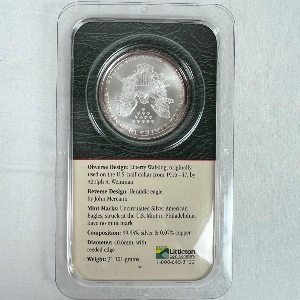 Uncirculated Silver American Eagle 1oz. Silver Dollar Bullion Coin.