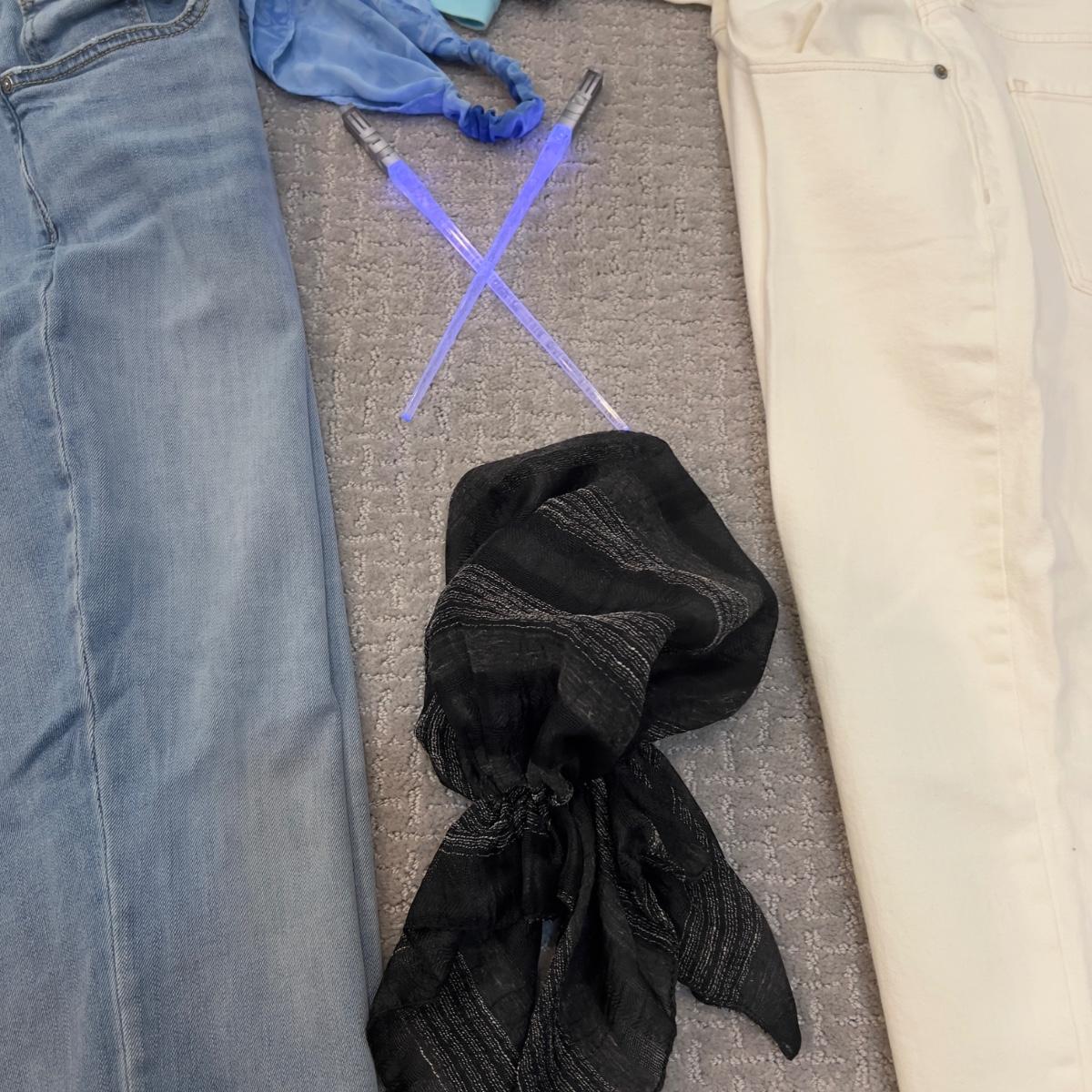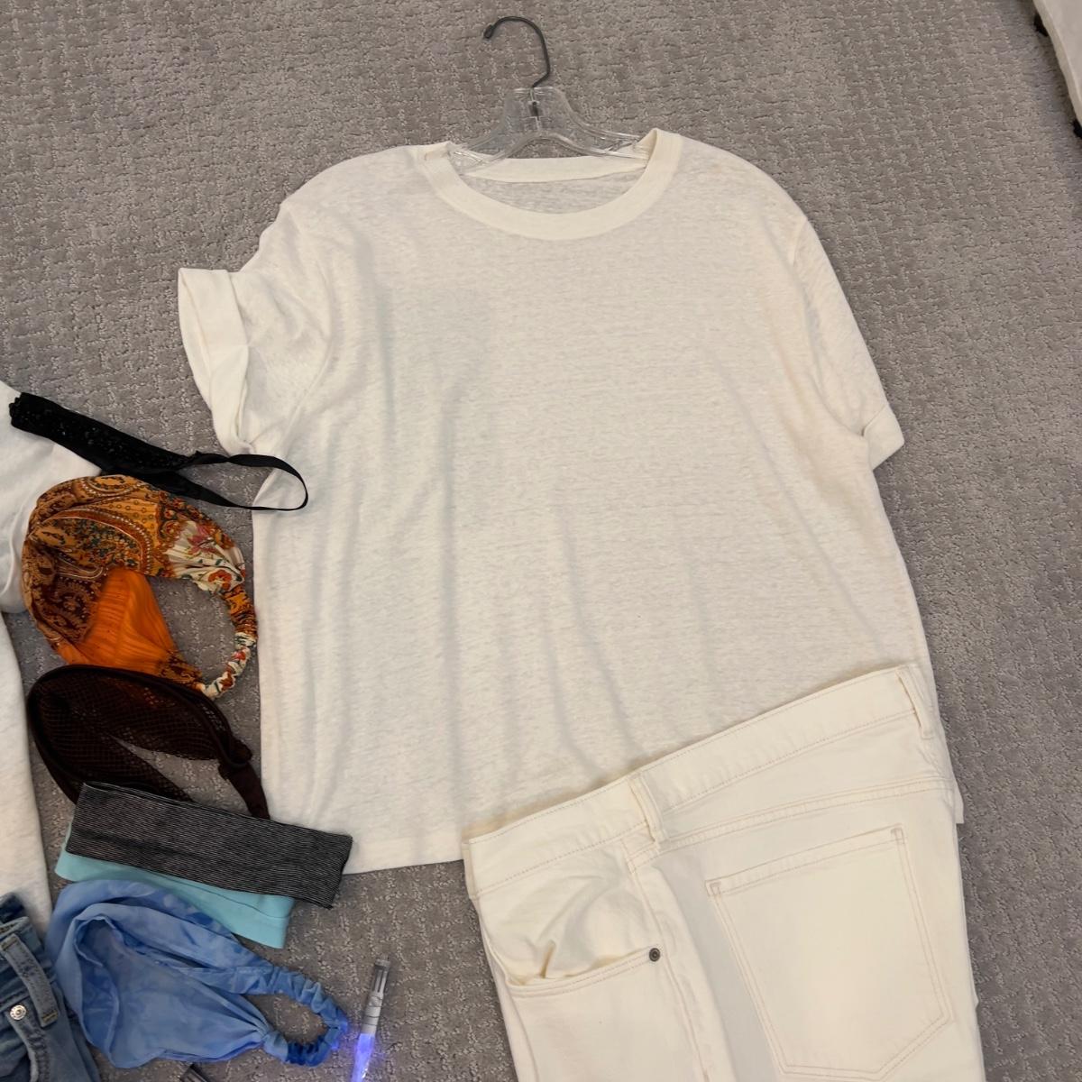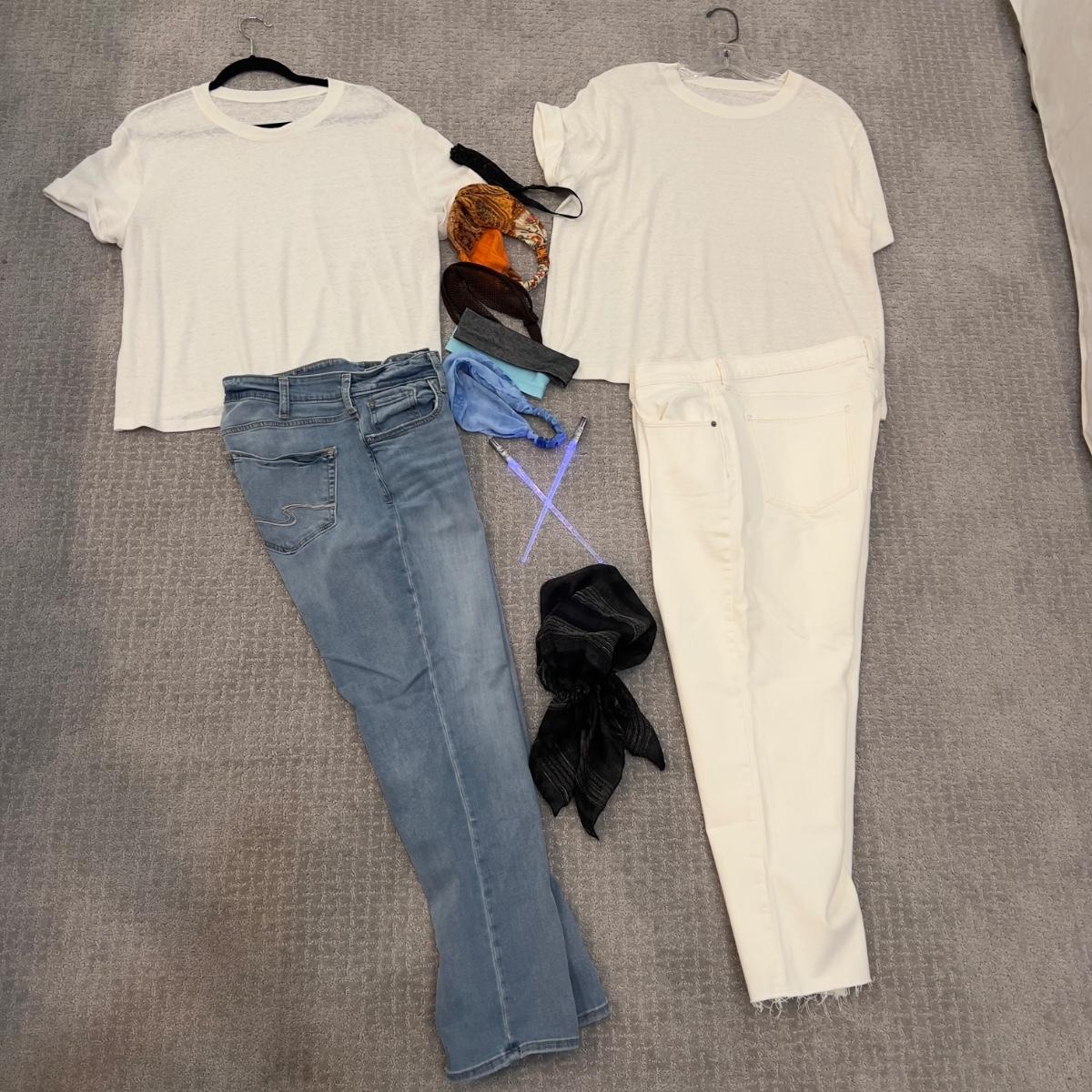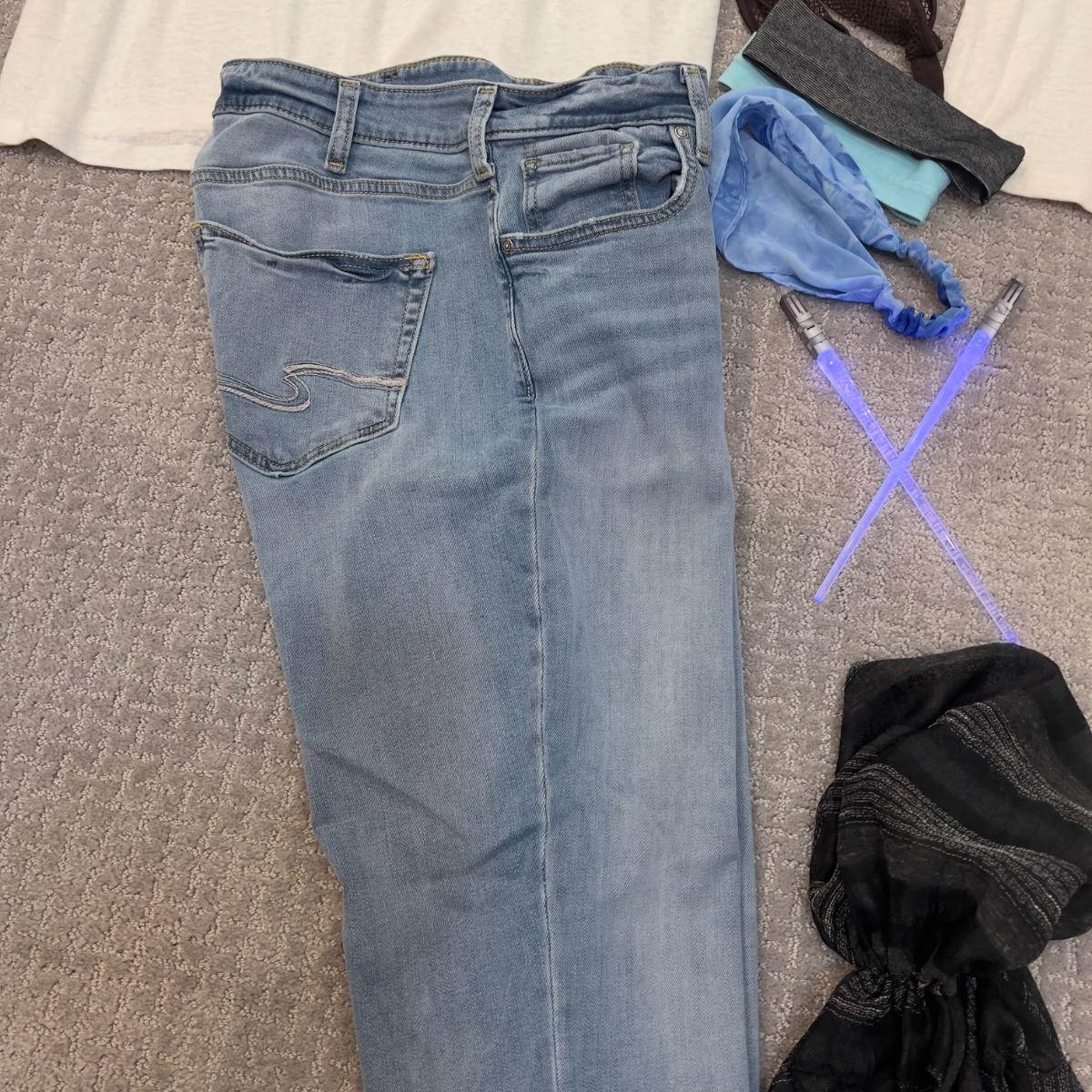 Silver jeans are size 33 waist and old navy pants are size 16 with casual white tops