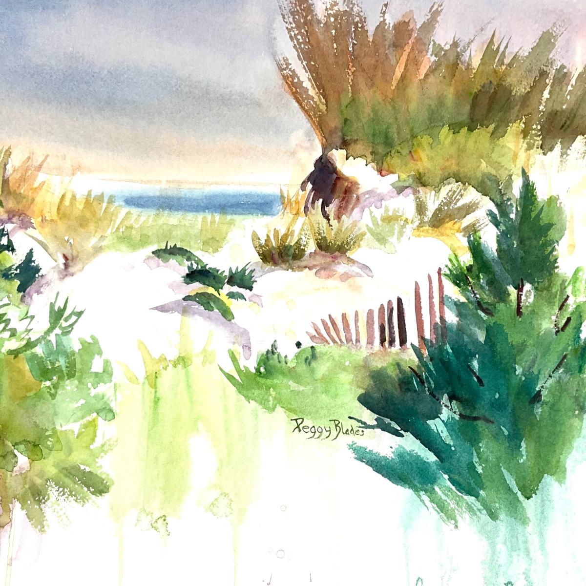 594 Original Watercolor of Beach Scene by Peggy Blades