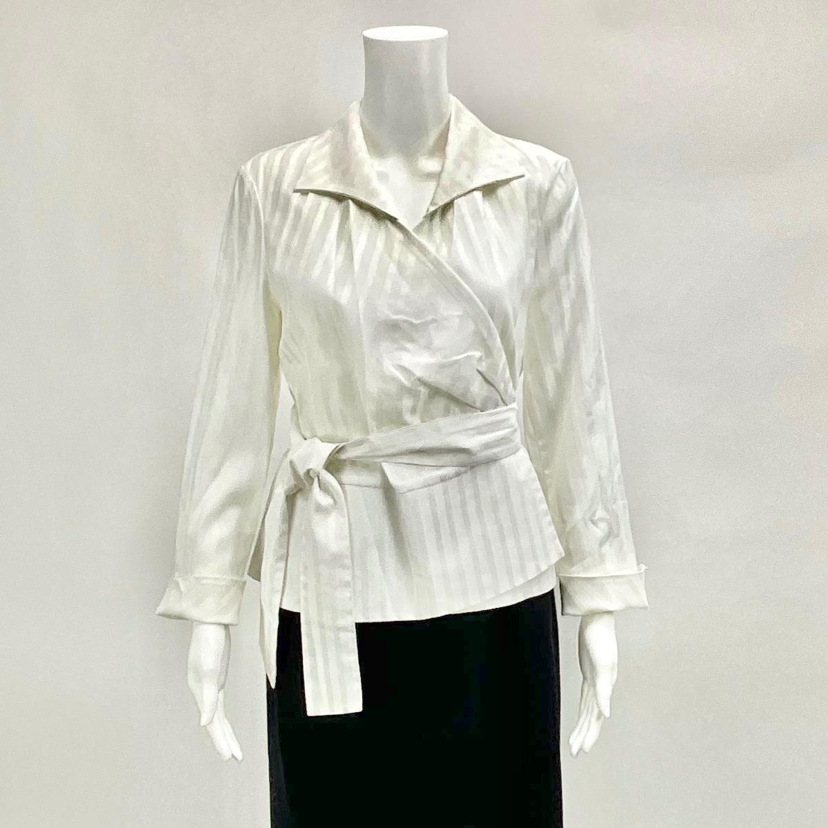 Alain Figaret Romania White Wrap Tie Blouse Size 40, measures