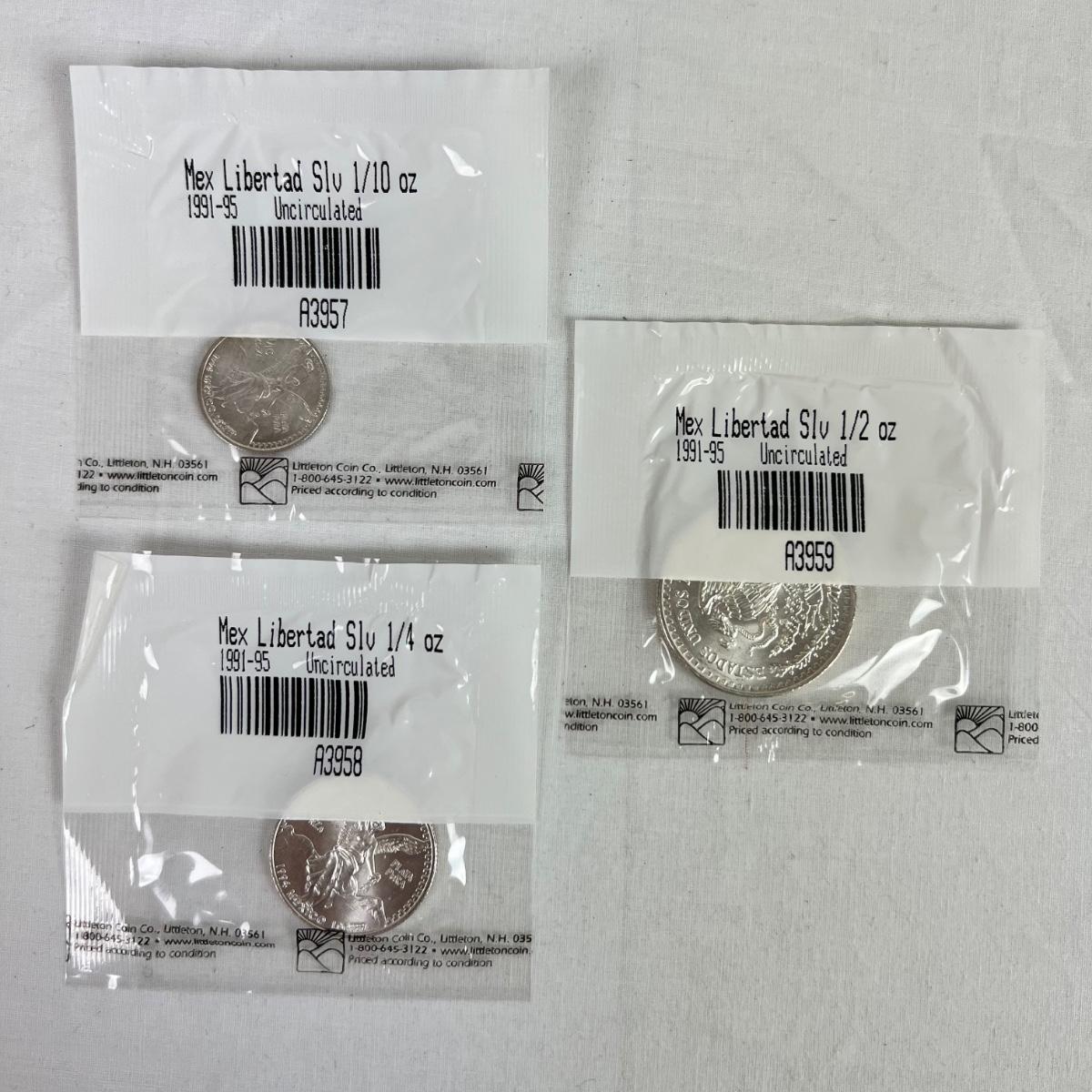 596  1991-95 Mexico Libertad Silver 1/2, 1/4, 1/10oz. Uncirculated Coins