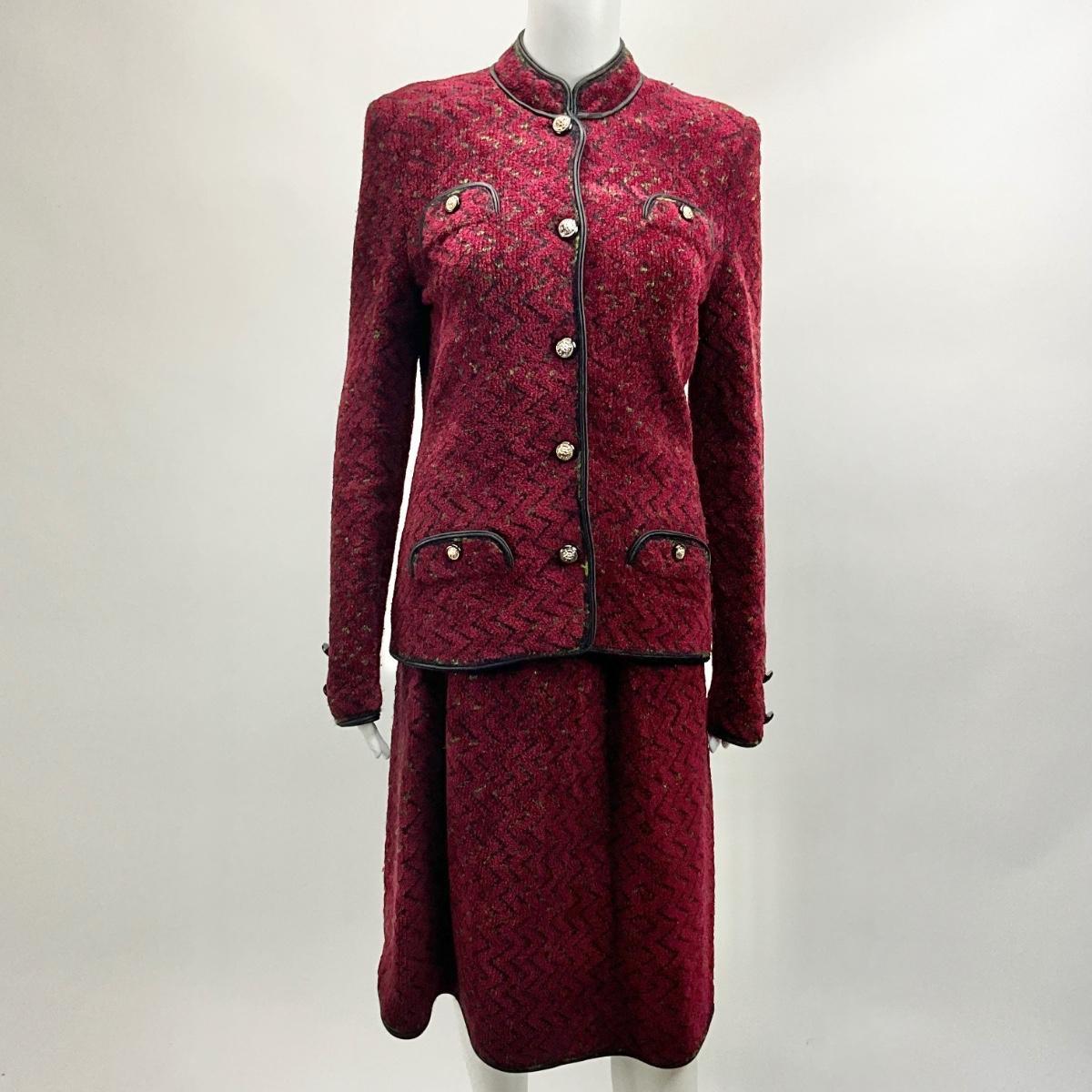 597 ADOLFO @ Saks Fifth Avenue Red Knit & Leather Trim 2pc Suit