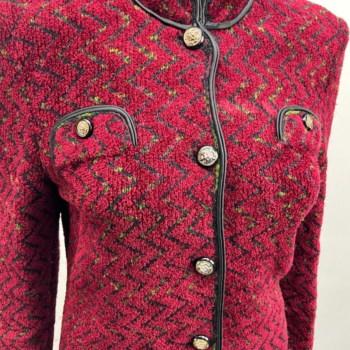 Red Knit Zig Zag with Leather Trim and Gold Buttons
