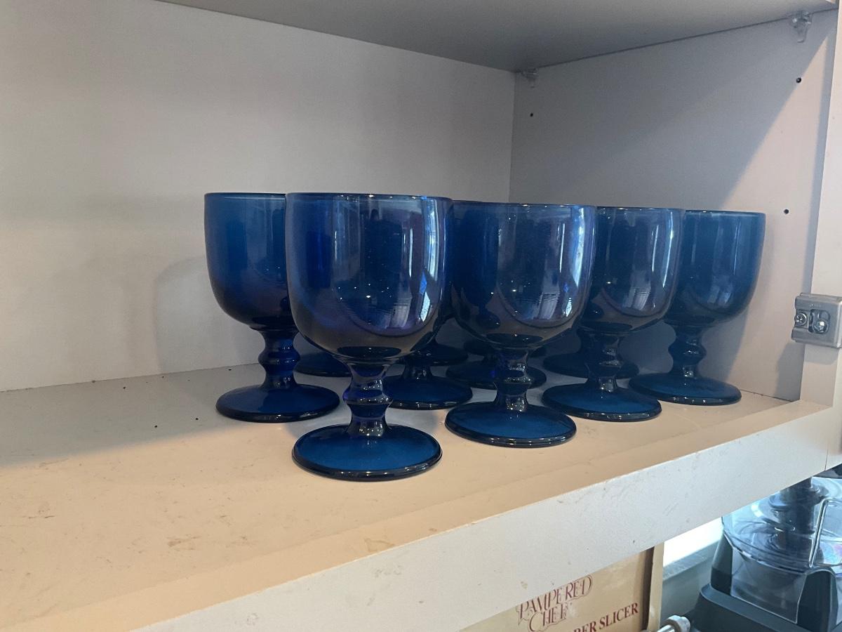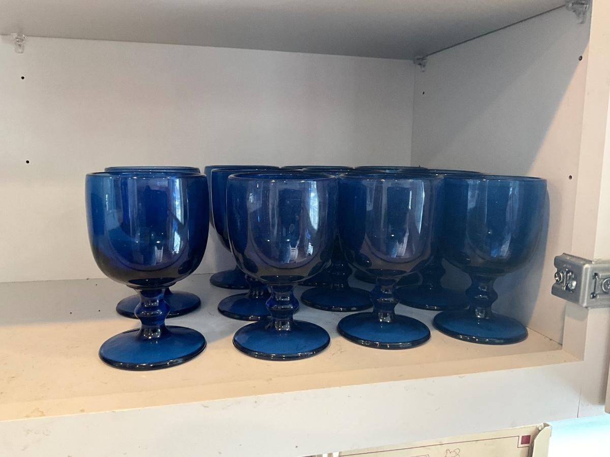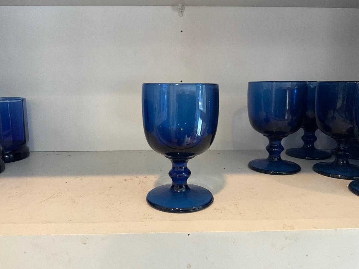 Swedish Nybro Cobalt Glass LOT to include: glasses-wine or water, very sold, well made. 4.5" H x 2.75" diameter. Qty:11