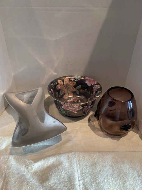 E - 599. Nambe Tray, with Decorative Bowl and Vas