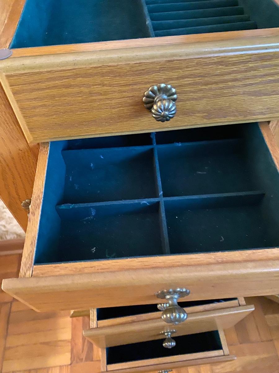 5-drawer & 2 door jewelry armoire, velvet lined - see details