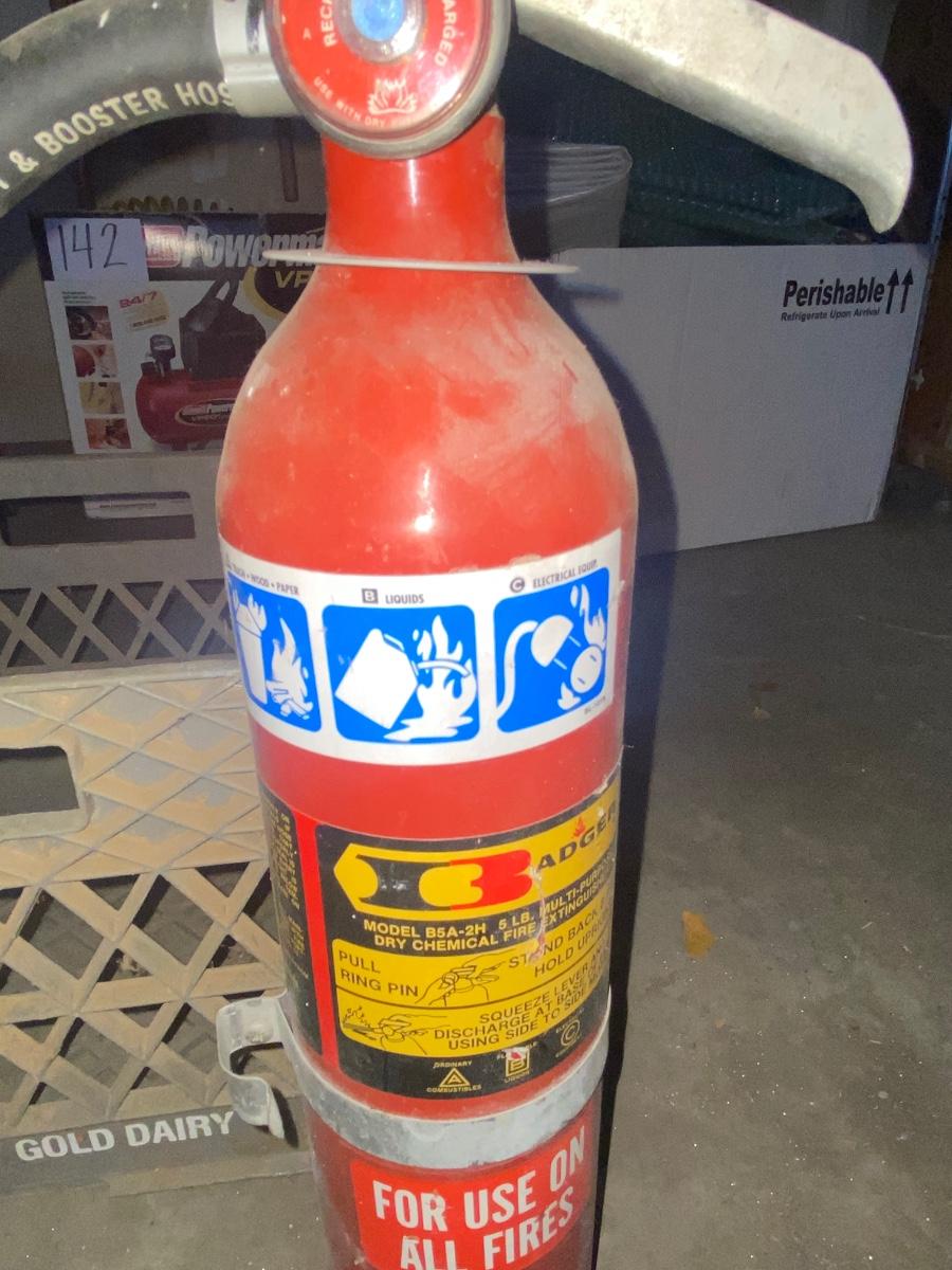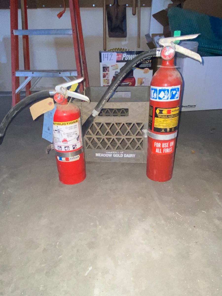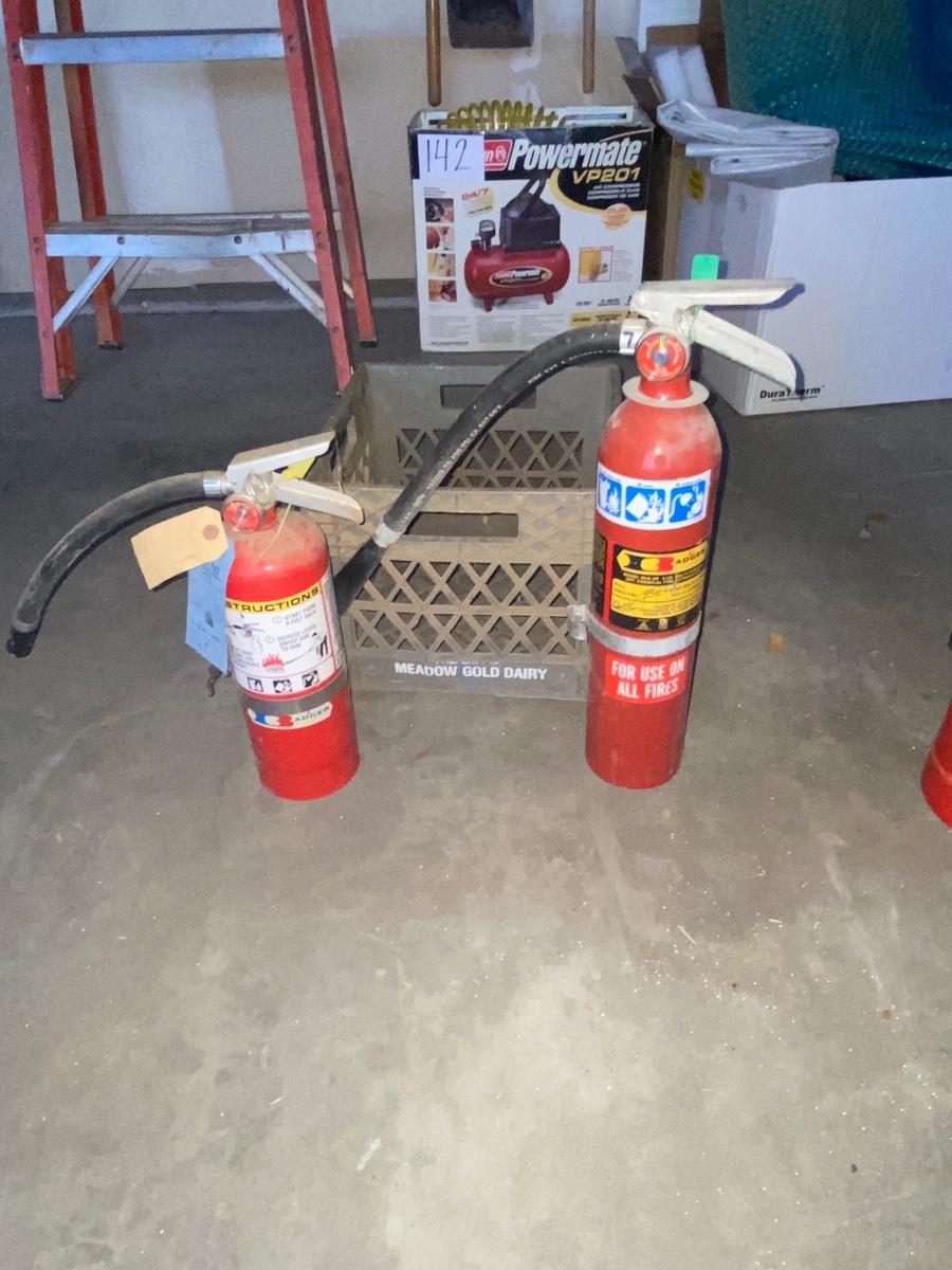 2 FIRE EXTINGUISHERS AND MILK CRATE