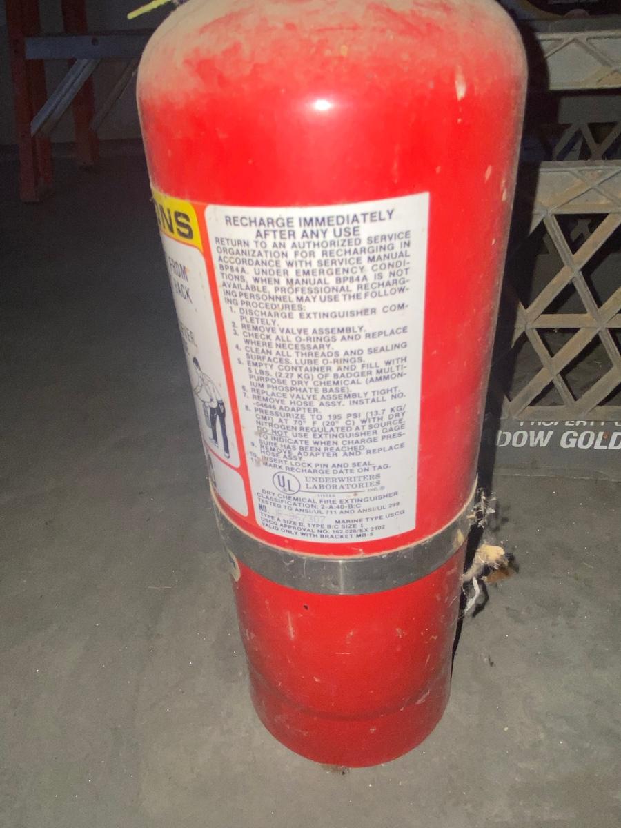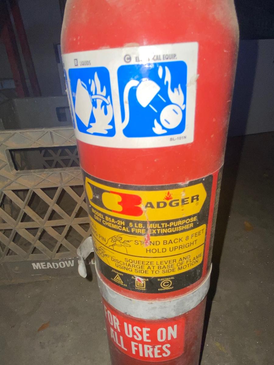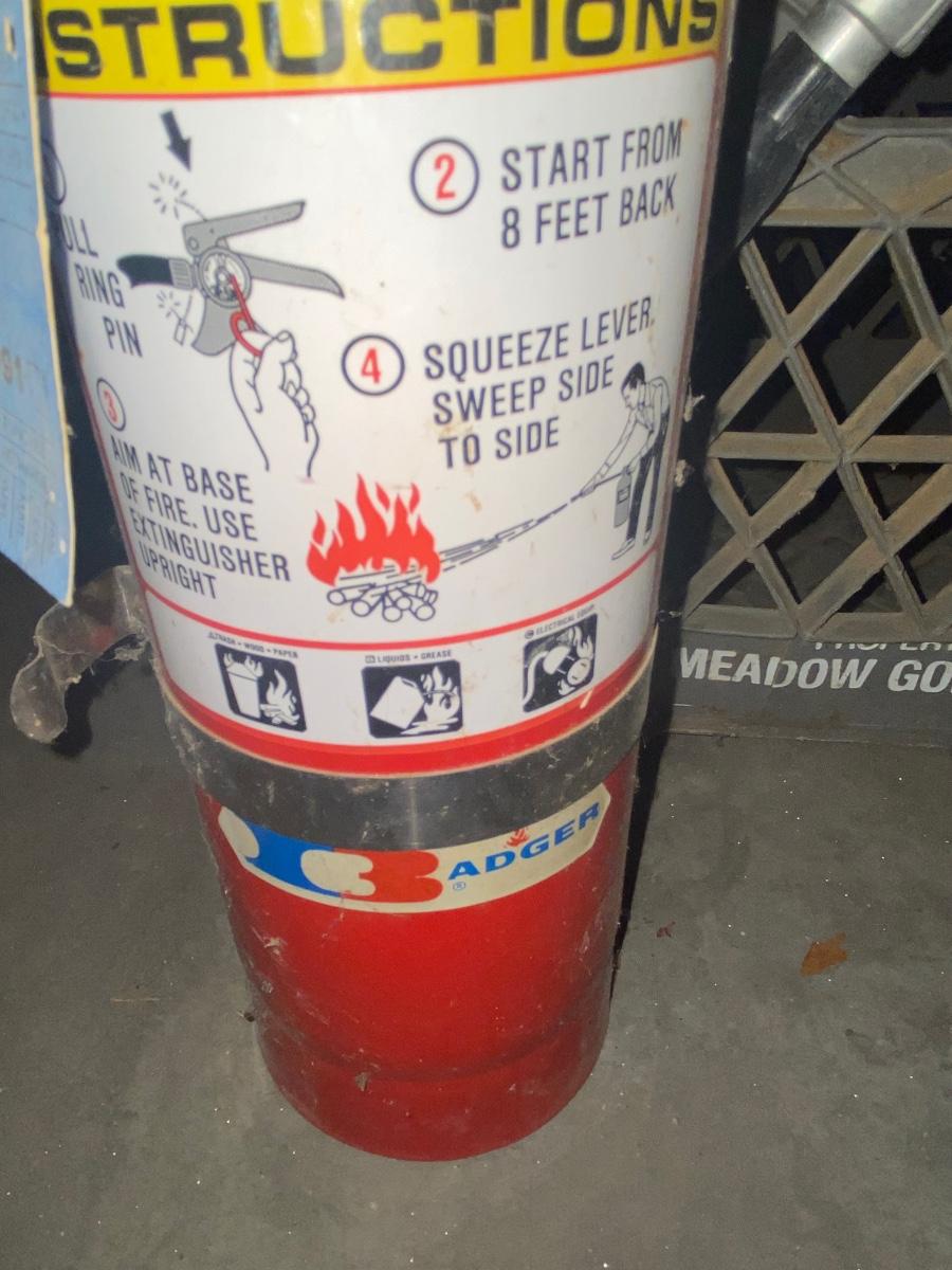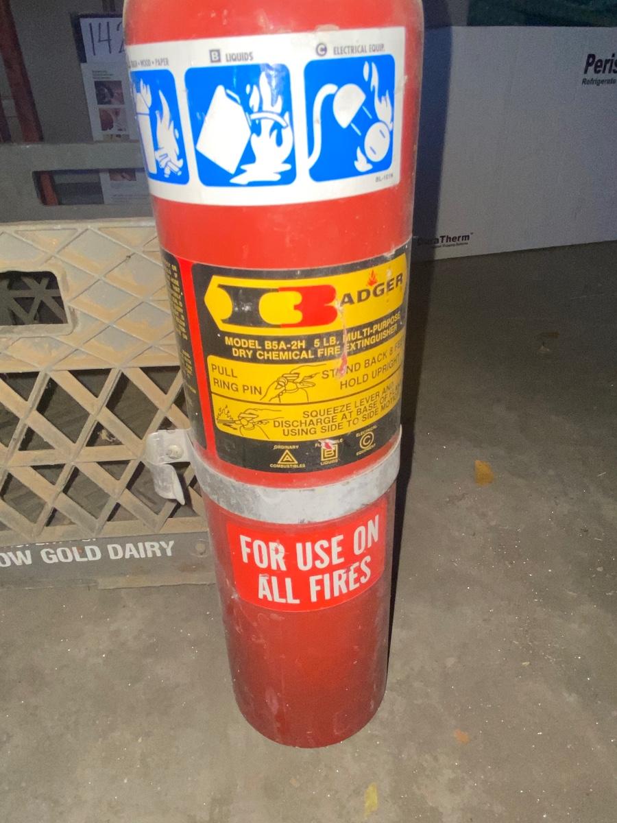 2 FIRE EXTINGUISHERS AND MILK CRATE