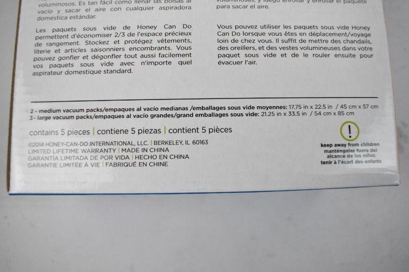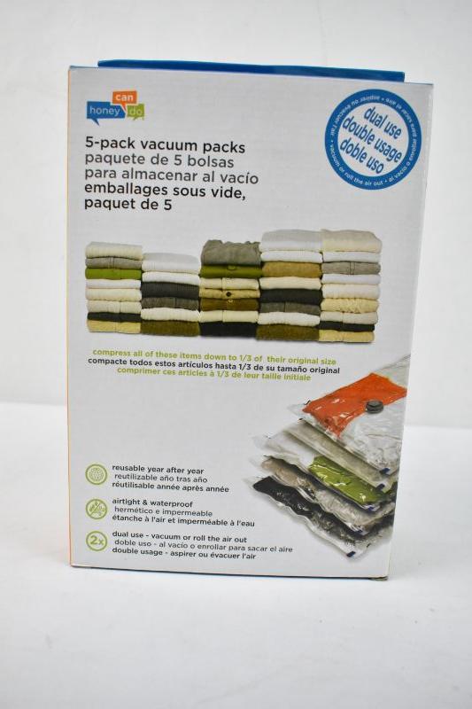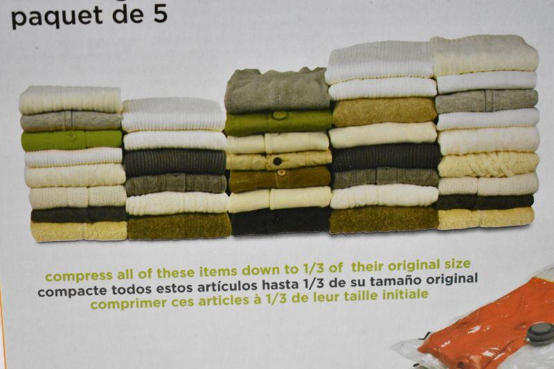 5-Pack Vacuum Bags, Reuseable, Dual Use (2 Medium & 3 Large) - New
