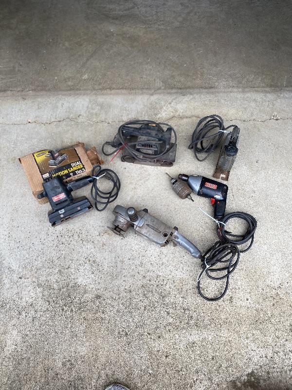 Includes: 1Dual Motion Sander / 1 Belt Sander / 1 Disc Sander / 1 Drill with Attachment / 1 Jig Saw / All have been tested and all work