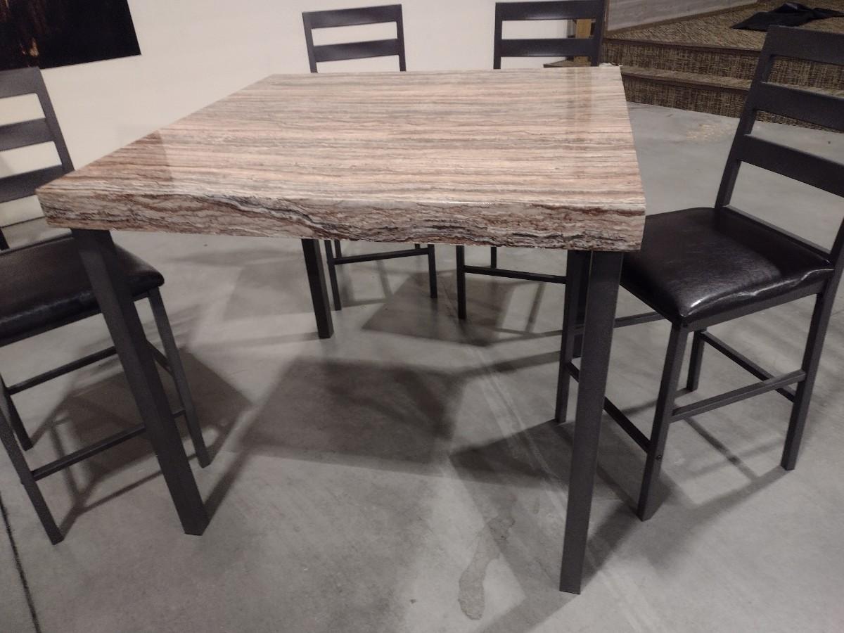 5-PC Metal Frame Composite Top Table with Cushioned Seat Chairs Choice C. Expect some chips to the tabletop. All tables and chairs are in similar good condition.
