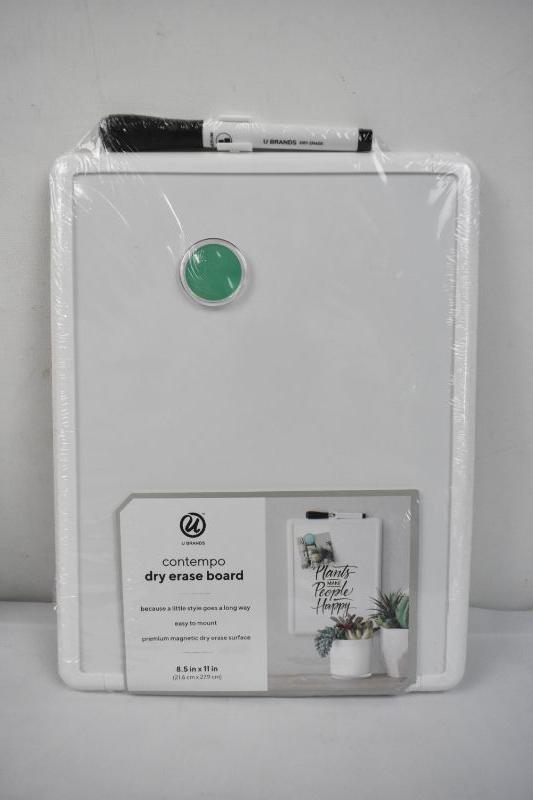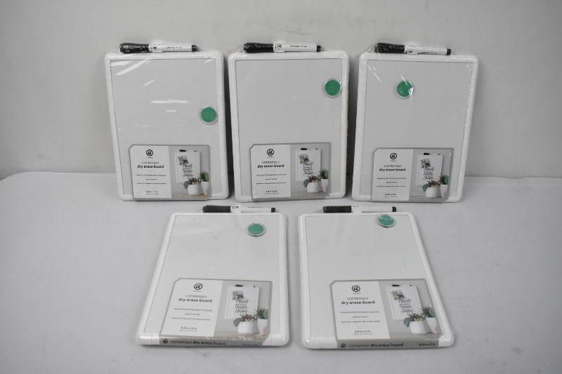 Quantity 5 Dry Erase Boards, Magnetic. 8.5" x 11" Each Includes 1 Magnet, 1 Marker, & Mounting Strips - New