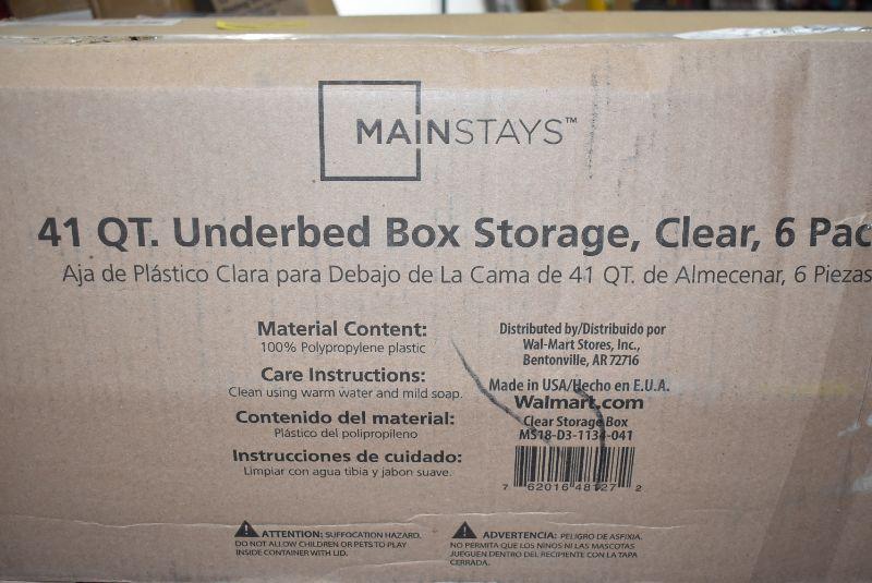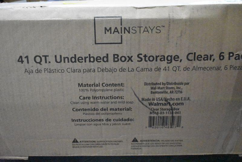 5x Mainstays 41 Qt Underbed Storage Boxes, ALL BROKEN OR CRACKED, still usable