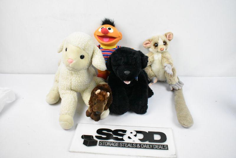 5x Stuffed Animal Toys: Lamb, Ernie, Moose, Dog, Lemur
