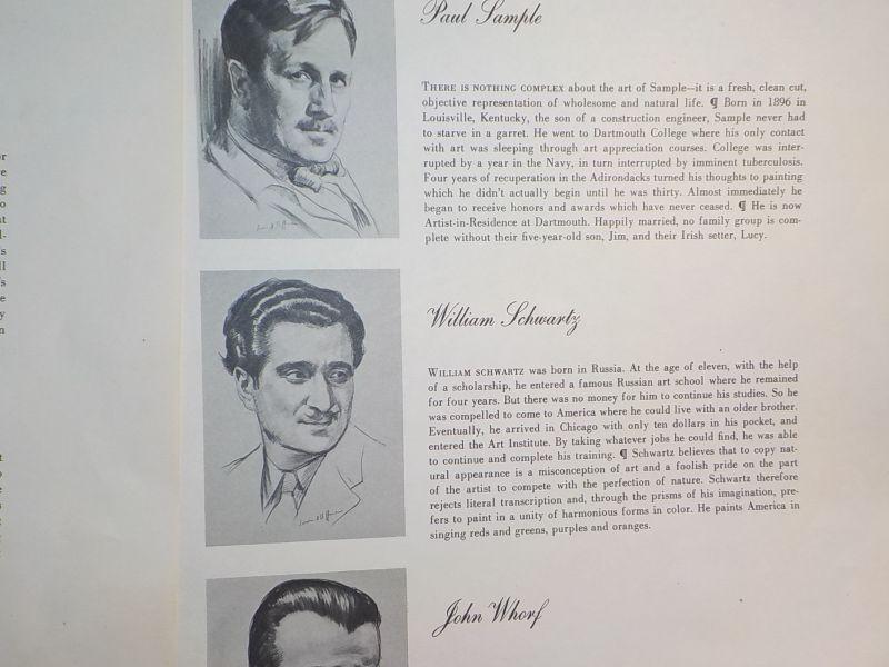 This is a large complete vintage book of stunning prints which can be framed from artist's like Paul Sample, William Schwartz, John Whorf, Thomas Hart Benton, James Chapin. These are all 18 in x 14 in in amazing color.