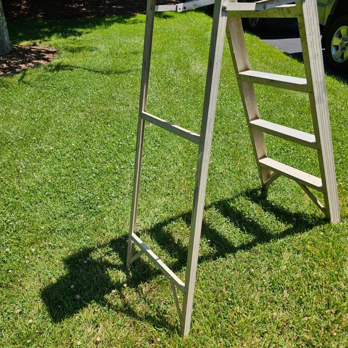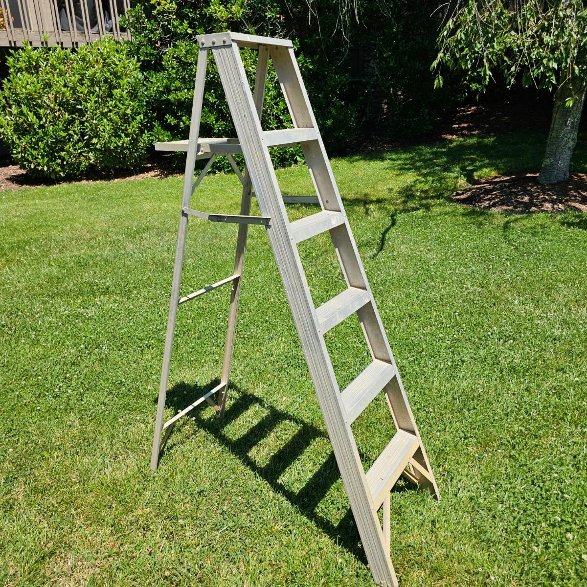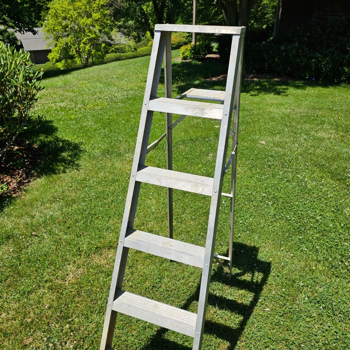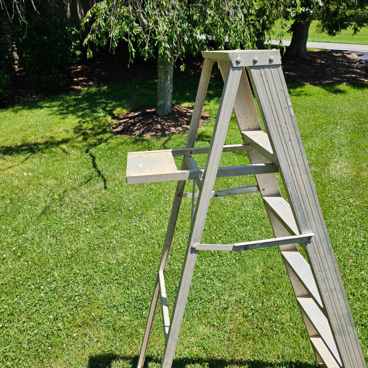 Small lightweight six foot stepladder with fold out tray. Sturdy, needs some tlc cleaning. See photos for details. Local pickup only.